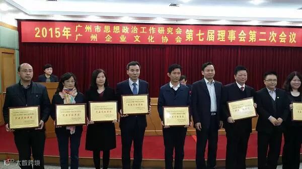 2015年2月10日,广州市思想政治工作研究会、广州企业文化协会第七届二次理事会议在市委5号楼一楼会议室召开。会上对“两会”组织的“2012—2014年度广州市企业文化建设评优活动”获奖集体和个人进行了表彰。越秀集团荣获集体类最高奖项“广州市企业文化建设突出贡献单位”荣誉称号,本奖项广州市仅有10家单位获得。集团党委副书记、董事伍尚辉荣获广州市“培育和践行社会主义核心价值观”论文比赛二等奖。