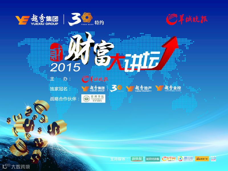 由越秀集团独家冠名,羊城晚报主办,中山大学管理学院担任战略合作伙伴的三方跨界合作论坛——“越秀集团•财富大讲坛” 将于于1月10日晚在中山大学管理学院国际会议厅举行2015年首期论坛。