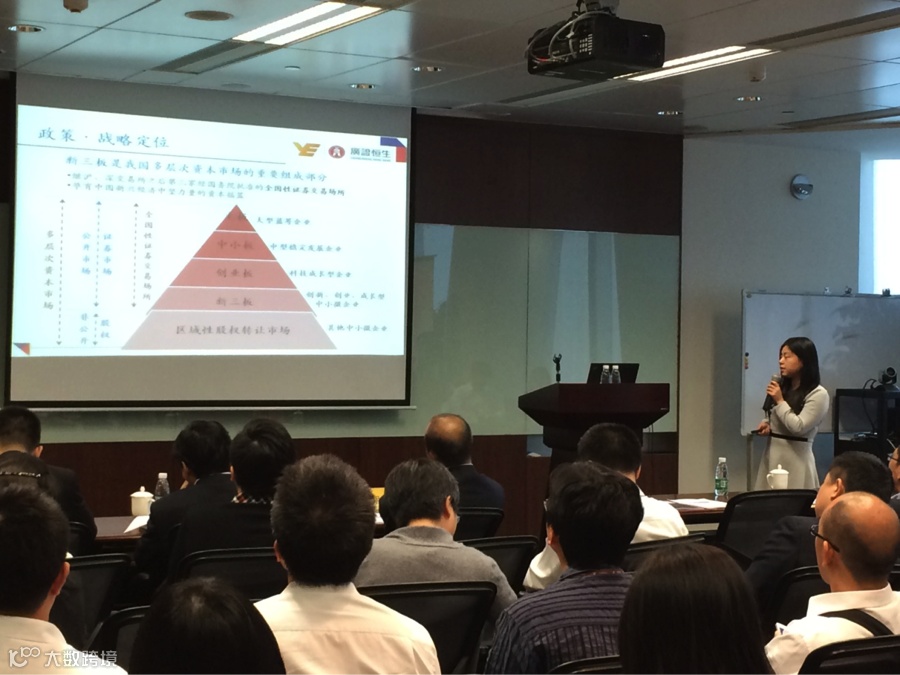 11月27日下午,广州广证恒生证券研究所有限公司“新三板研究专题—透视新三板,探寻下一风口”培训讲座在西塔64楼第四、五会议室举行。越秀金控集团临时党委副书记、纪委书记、工会主席吴志明、越秀金控集团副总经理高宇辉、越秀金控集团信息技术部总监徐欣力列席,广证恒生代理总经理袁季、新三板小组组长徐舜、组员邱翼主讲。本次讲座共有60多名部门精英参加,获得了集团领导的充分肯定。