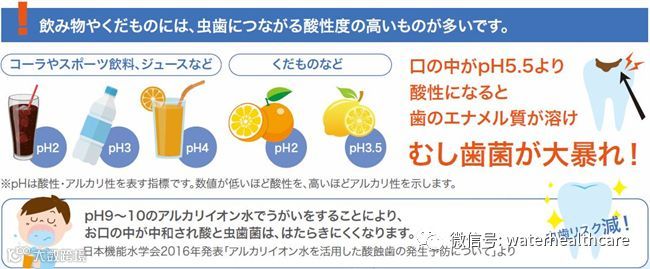【荒川】说到漱口,根据东海大学的佐藤勉老师的实验,明白了很有趣的事情。当把运动饮料含在嘴里之后,是否用自来水和碱离子水漱一下口,会造成口腔内pH的恢复方式完全不同的结果。实验证明了碱性离子水有助于口腔内的环境恢复到中性,所以我们也打算使用各种不同pH的碱性离子水进行临床研究哟。