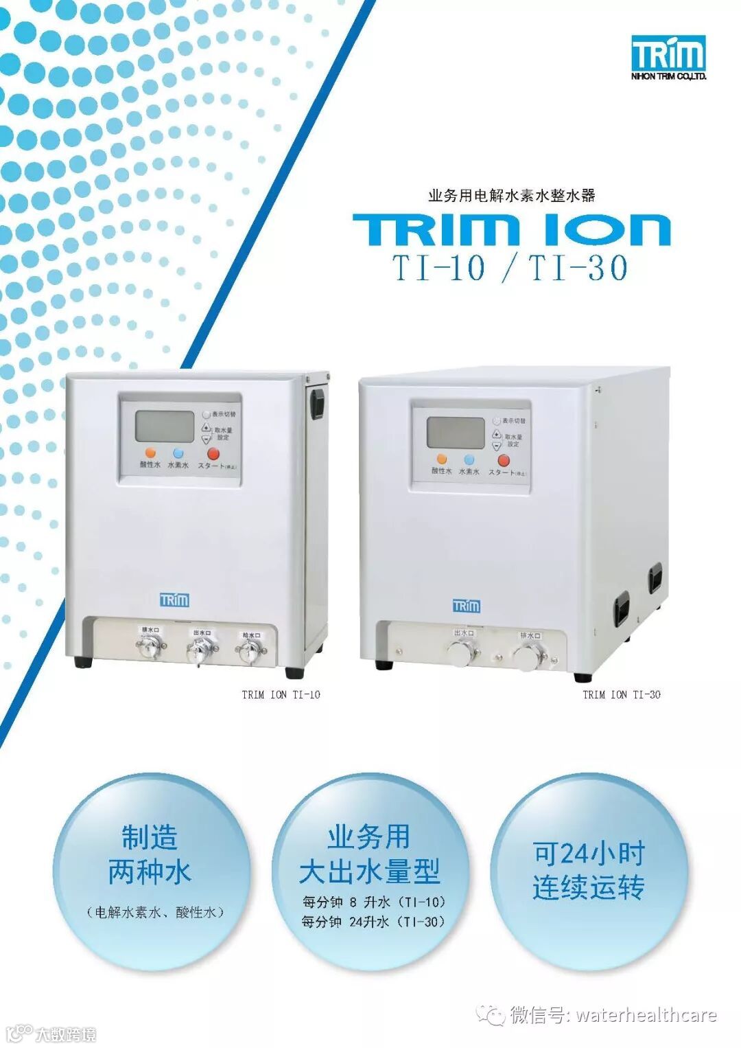 多宁T-30商用电解水素水整水器因其产水量大,非常适合走高端路线的餐饮店、茶室、咖啡厅、单位食堂以及高端会所或汽车4S店。目前,杭州多宁公司引进了若干台,如有需要,可直接电询洽谈,联系方式见下面单页。