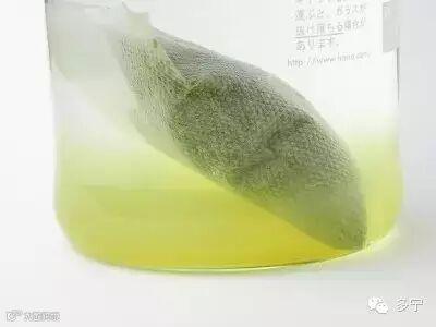 它来自于制茶过程中损坏了的茶叶组织所形成的“浑浊”的颜色, 所以静置时显出的是“黄色”,而搅匀后则变成了“绿色”。
