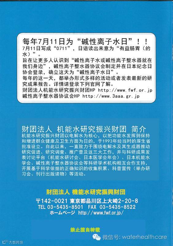 ※一般财团法人机能水研究振兴财团官方网站http://www.fwf.or.jp