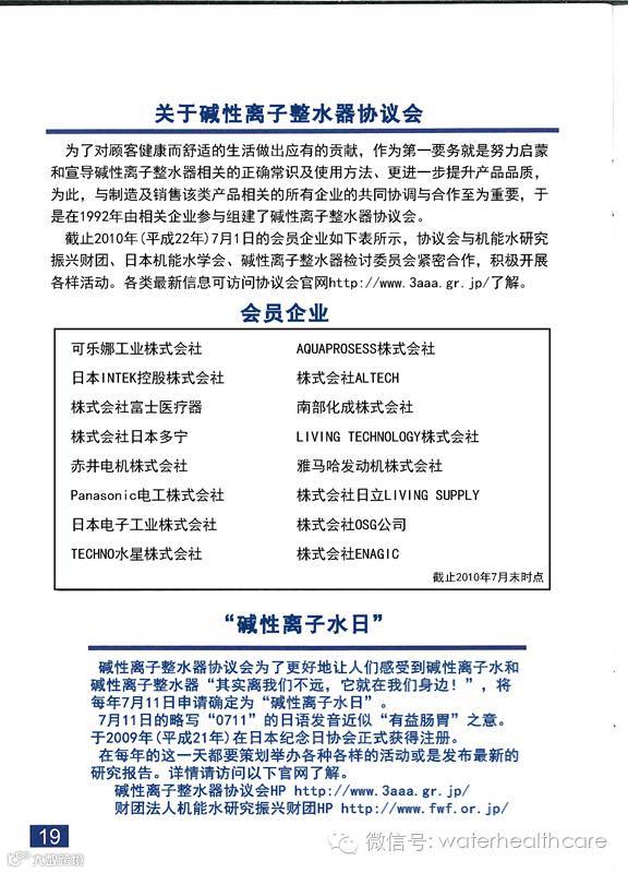 ※整水器的历史、功效、研究成果等敬请参阅http://www.3aaa.gr.jp/alkali/index.html