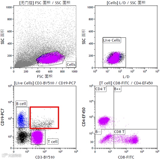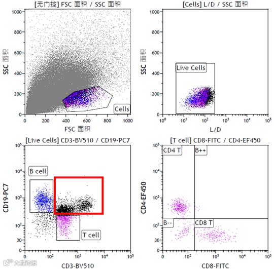 图1 血液样本淋巴细胞免疫分型流式数据