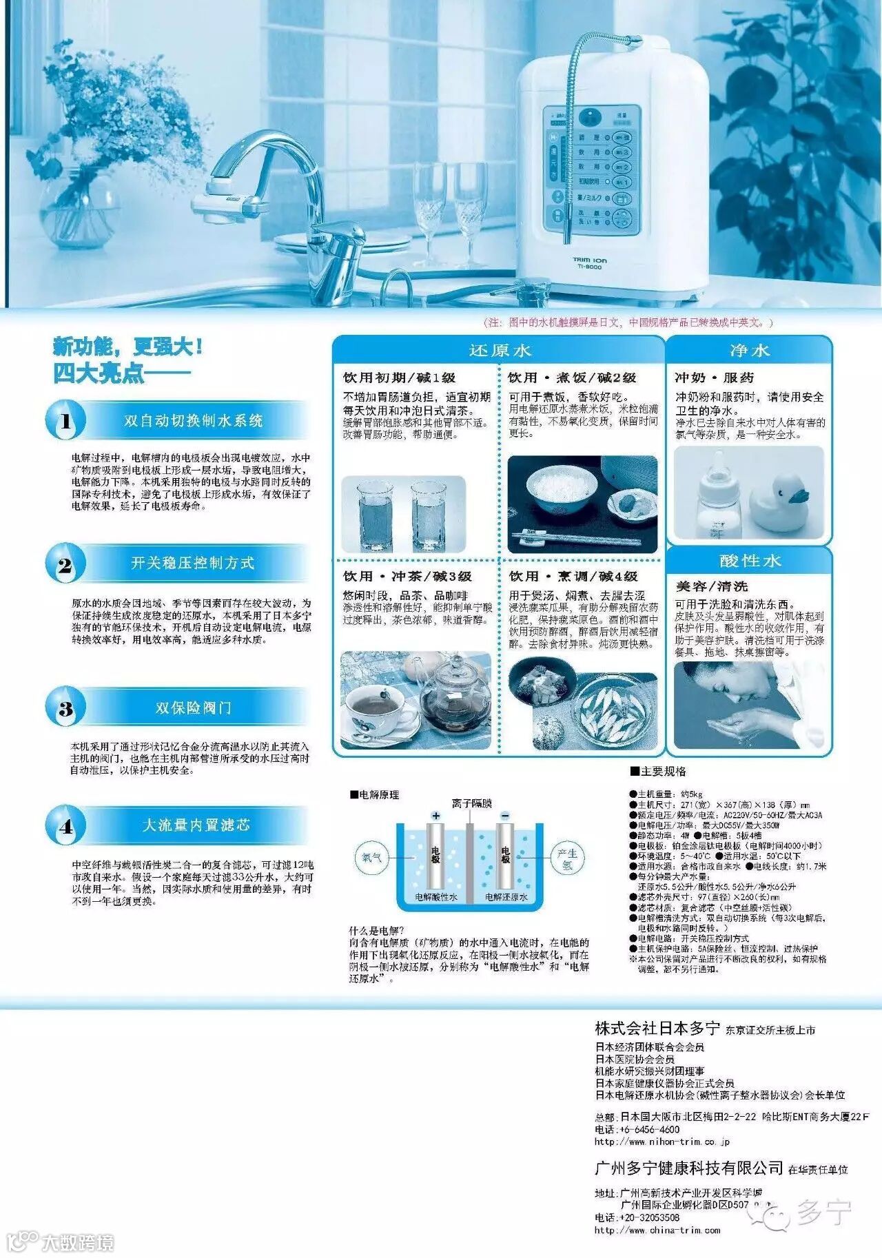 经典版的日本多宁电解水机,又名“多宁牌TI-9000型家庭用制水器”。搭载了日本多宁国际专利技术的“双自动切换系统”,每电解制水3次后,正负电极极和酸碱水路就同时变换,然后再电解3次后又一次变换回来,因此防止了电极板表面日积月累形成厚厚的一层水垢所导致的电解效果下降的问题,也延长了电极板寿命。此型号也是目前为止在国内市场最受欢迎的一款台式电解水机。