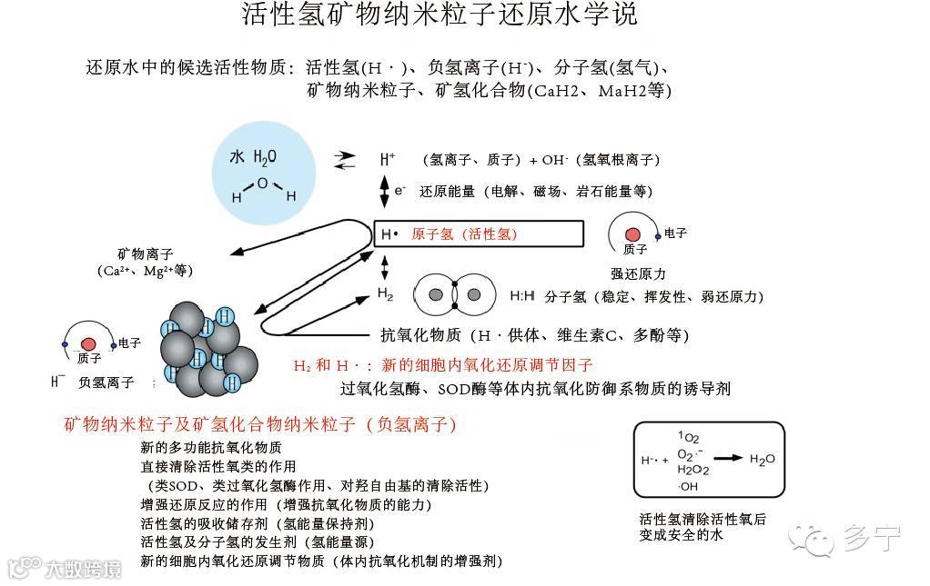 我们为了综合说明电解还原水和天然还原水的作用机制,提出了活性氢矿物纳米粒子还原水学说(图3)(参考补充材料)。