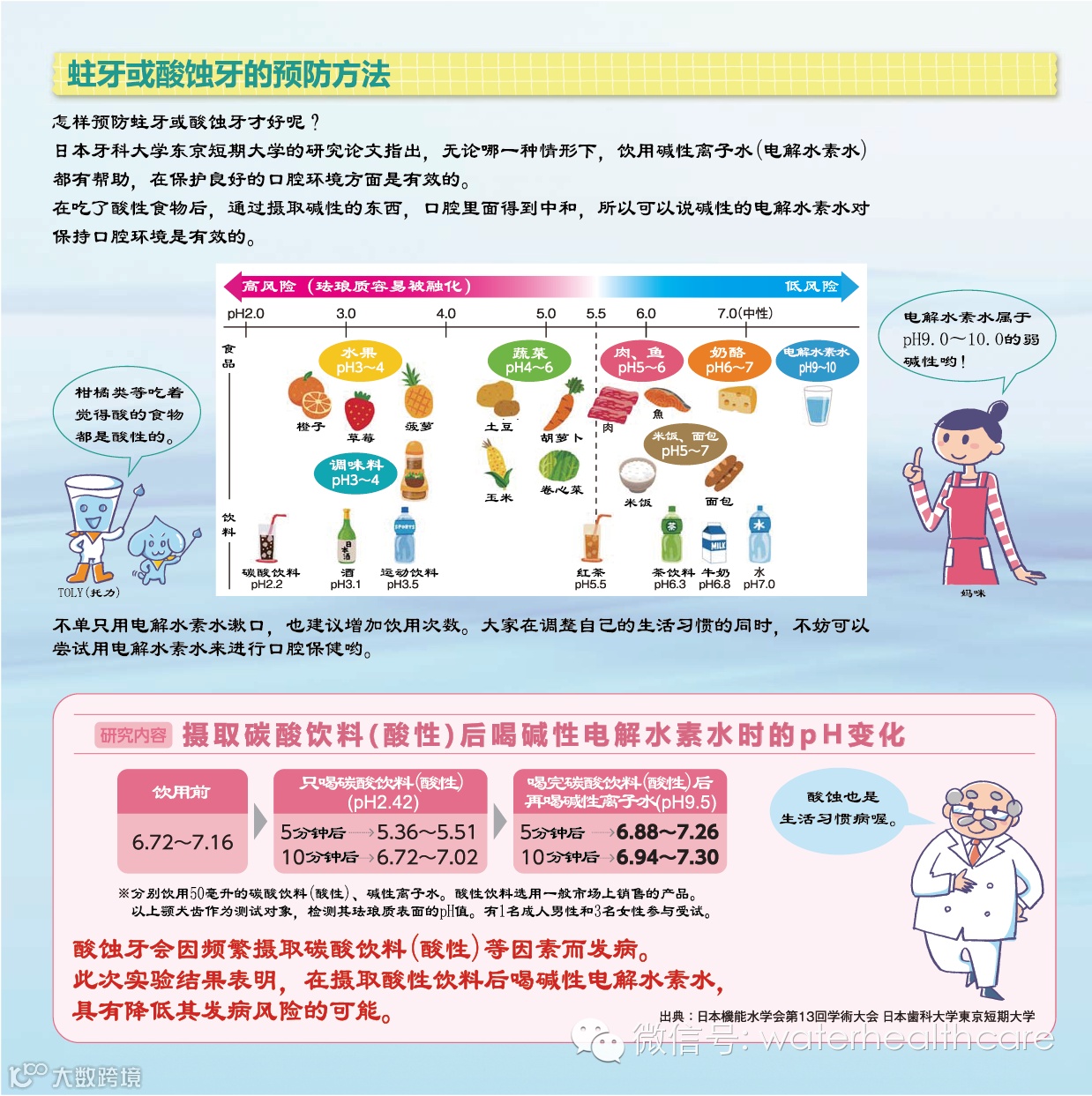 弱碱性的电解水素水能抑制口腔中蛀牙的细菌等的活性,这在去年召开的第13届机能水学术大会上有关专家发表的学术论文中被证实。于是,我们马上为您介绍DIY预防蛀牙的方法。