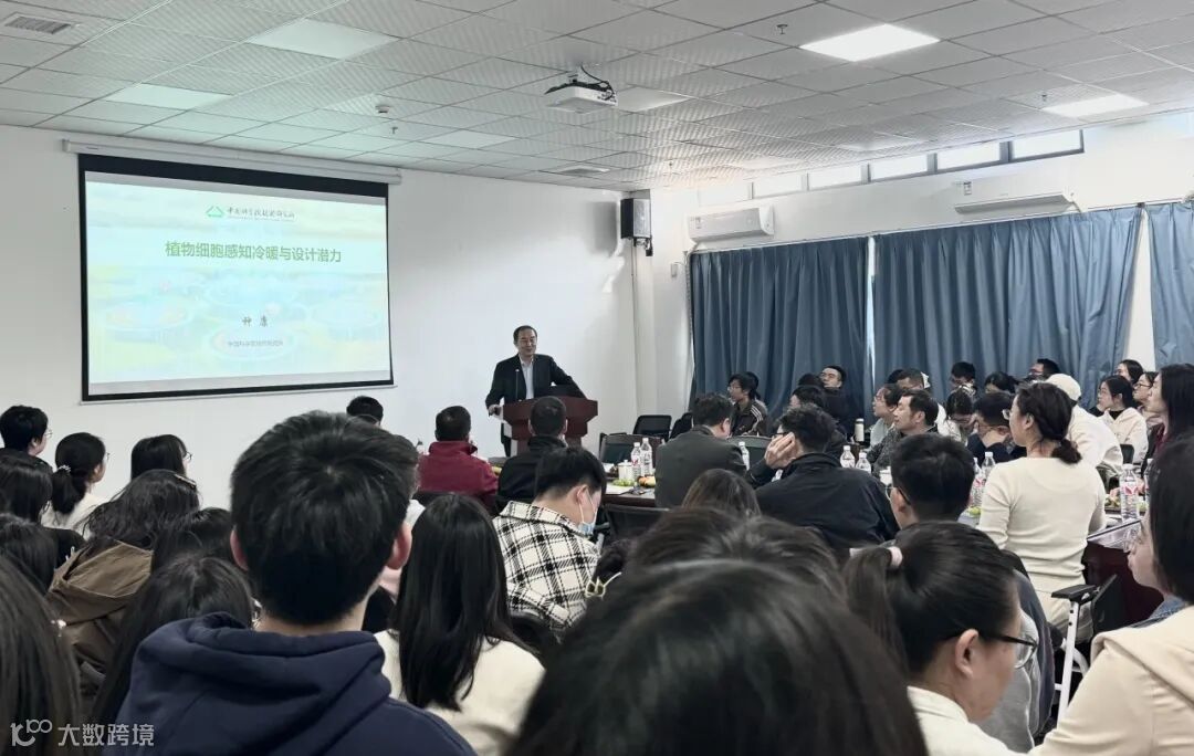 揭幕仪式前夕,中国科学院院士种康带来了一场深入浅出、精彩绝伦的学术讲座 ——“植物细胞感知冷暖与设计潜力”。种康院士以其深厚的学术功底和丰富的科研实践经验,将植物细胞领域那些高深莫测的前沿研究成果,用通俗易懂的方式呈现给大家。这场报告不仅为师生们打开了一扇通往植物微观世界的知识之窗,更营造了浓厚的学术交流氛围,让知识的火花在校园中激情碰撞。