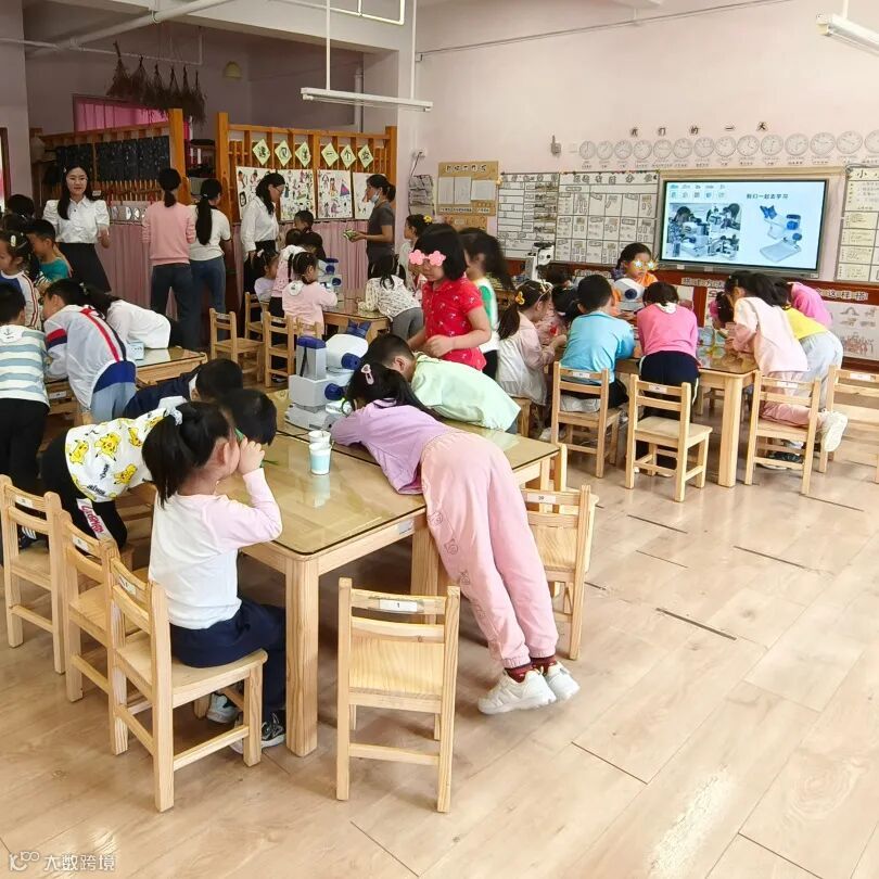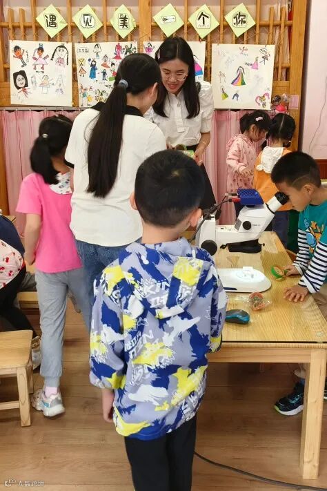 幸好导游姐姐发现了,走过来指导牛墩如何使用显微镜观察标本,还在旁边鼓励牛墩成为勇敢、无畏的小小科学家。