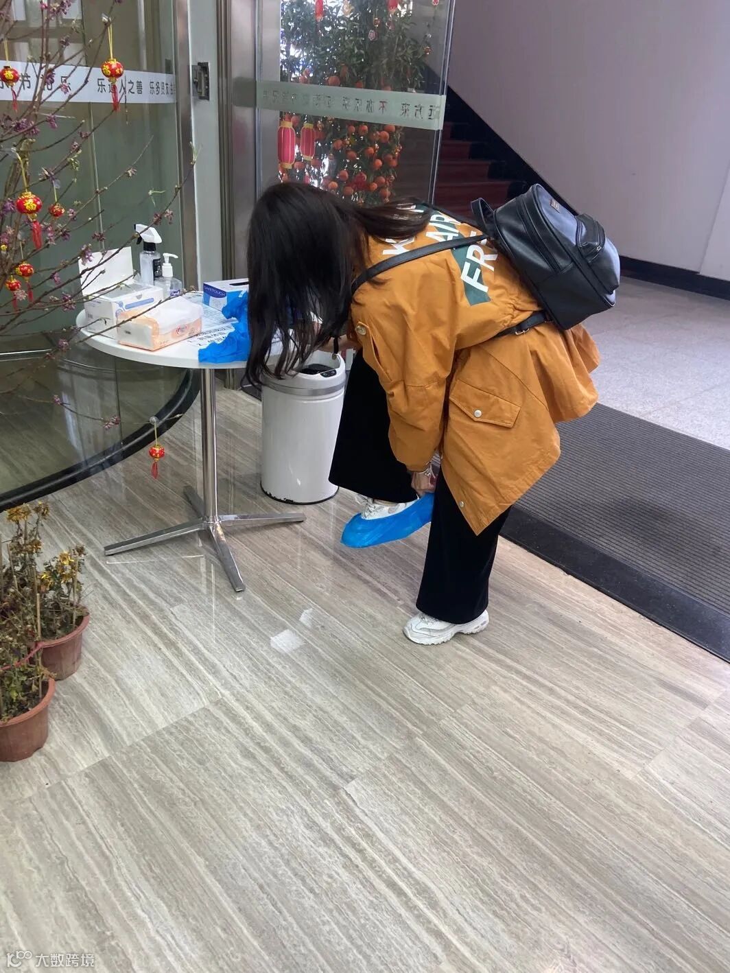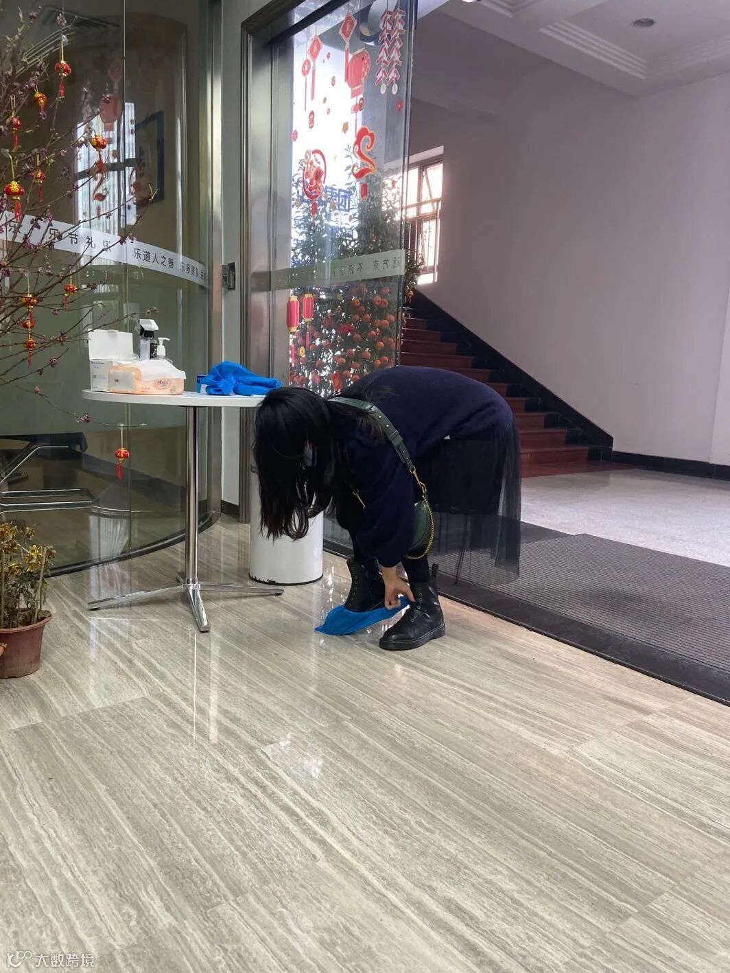 穿上鞋套:公司贴心地为大家准备了一次性鞋套,细菌病毒通通“走”开
