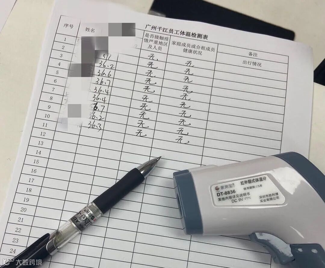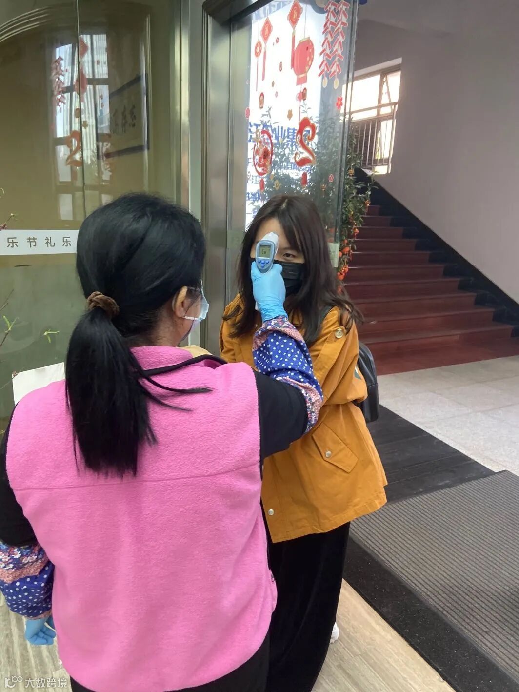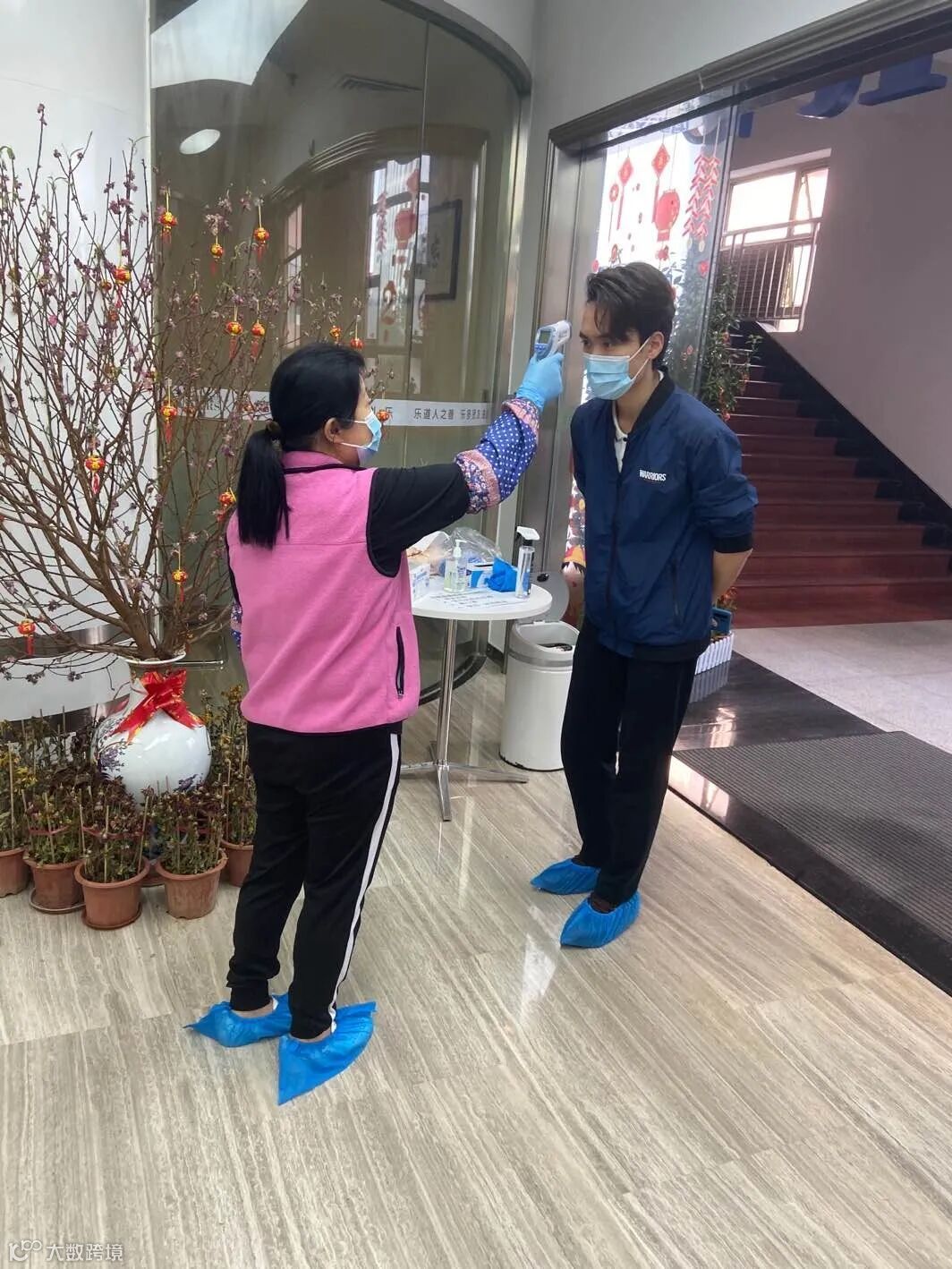 体温测量:设立专人为同事测量体温,并在体温监测日报上做好记录,体温超过37.2度、有干咳、乏力、逐渐呼吸困难症状需立即就医,体温无异常则顺利通过,开启愉快办公的一天