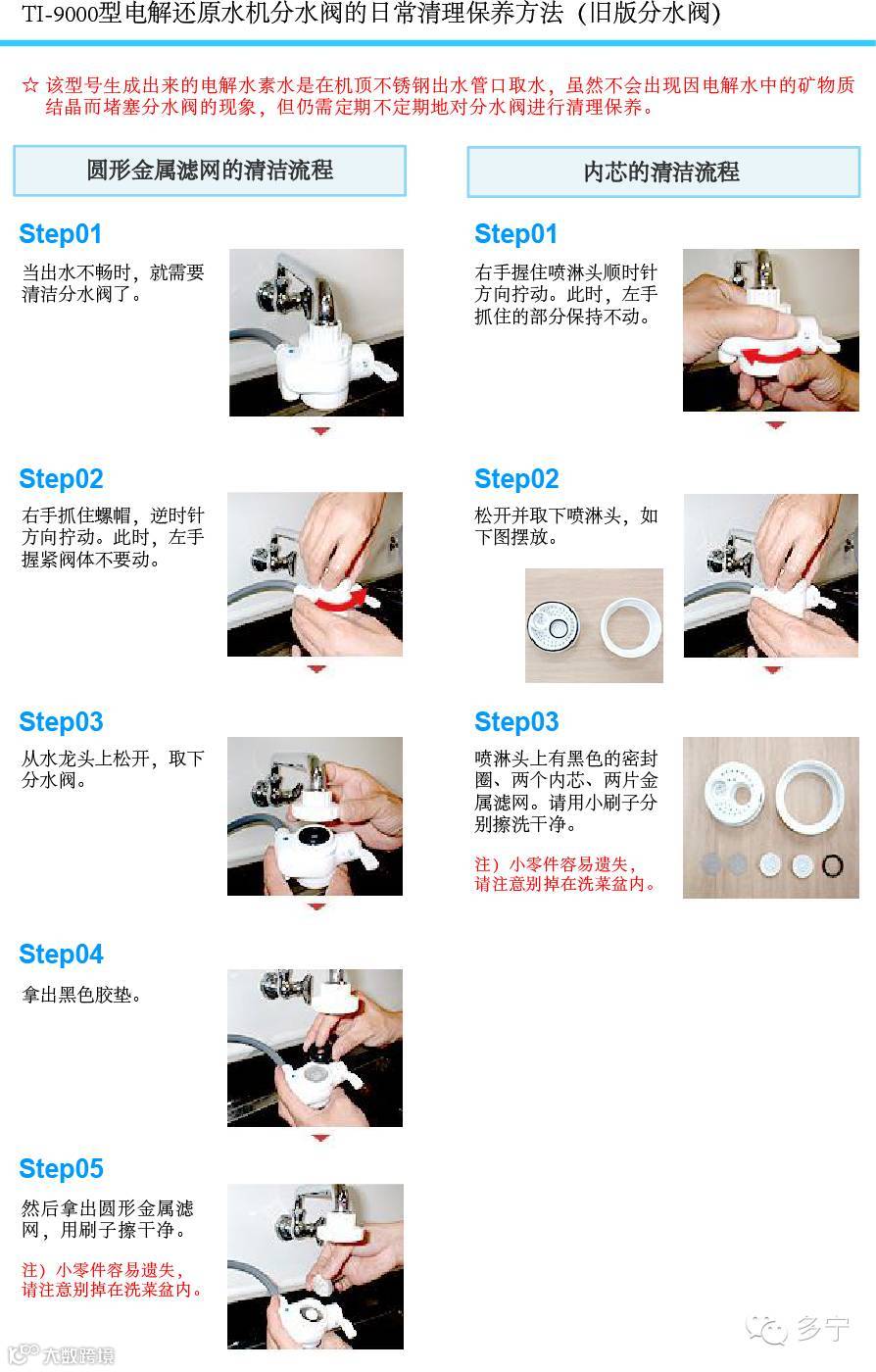 旧版分水阀的保养方法 (经典版TI-9000电解还原水机) 多宁