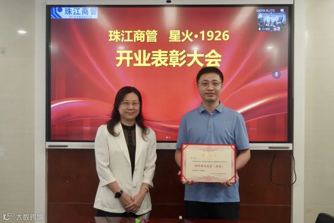 ▲ 珠江商管党总支副书记、工会主席马敏虹为“协作服务之星”颁奖