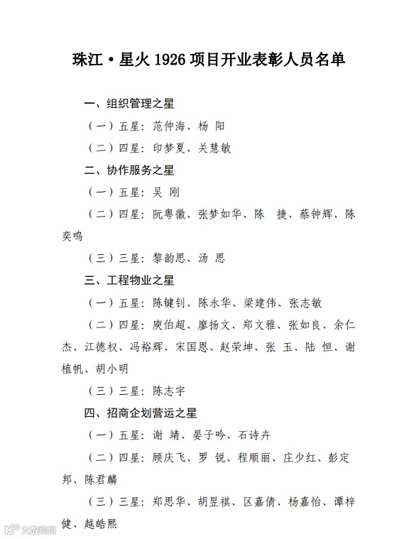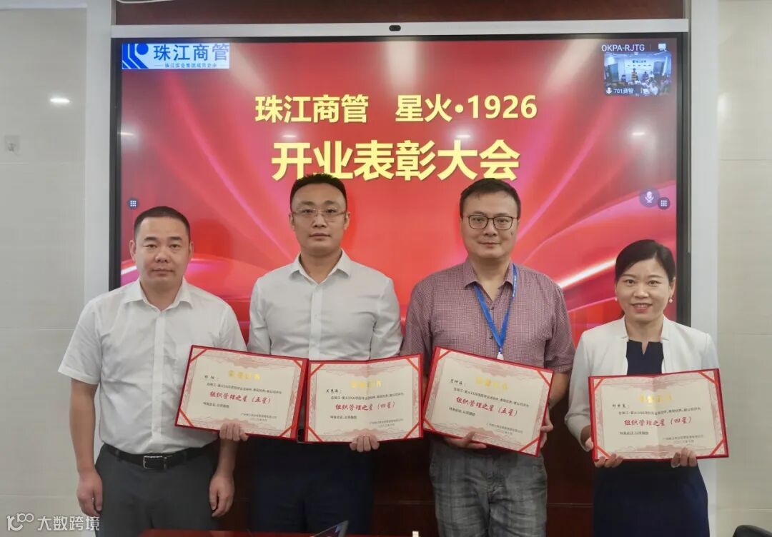 随后,公司领导班子成员分别为组织管理之星、招商企划营运之星、工程物业之星、协作服务之星、支援之星等受表彰五星获奖员工颁发荣誉证书,并合影留念。此次表彰大会充分彰显了珠江商管对奋斗者的认可与礼赞,以榜样风采提振全员奋斗精气神,以先进故事激荡再建新功的磅礴力量。