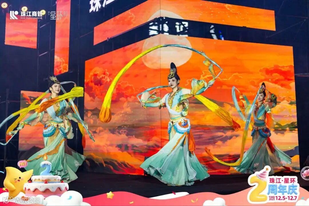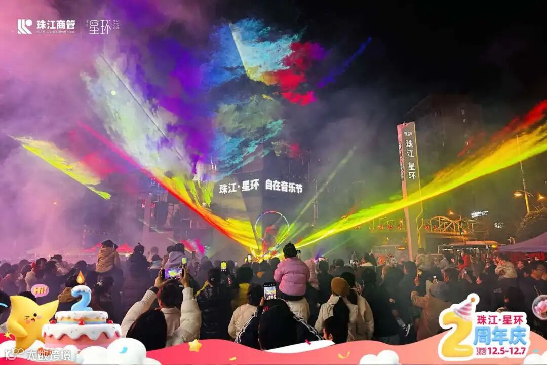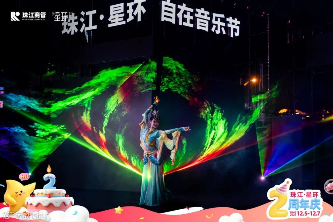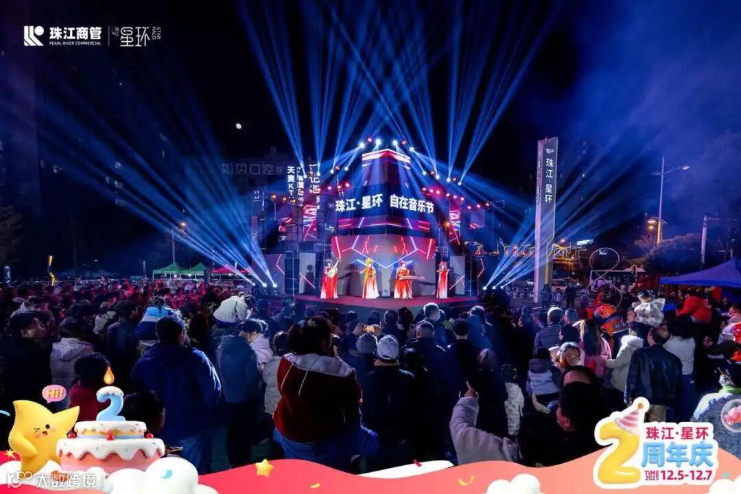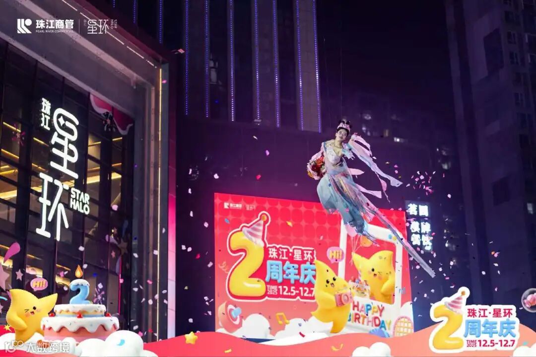 为回馈两年来消费者的支持与信任,珠江·星环以“世界级艺术盛宴+惠民消费福利”为核心,策划了覆盖全客群的周年庆活动。活动期间“敦煌飞天极光夜”“赛博高空飞碟巨幕焰火”“梦幻雪国狂欢夜”“造梦马戏团巡游”四大主题活动轮番上演,同步升级的“自在运动会2.0”联动多家运动集市,实现 “运动场景”与“消费场景”的深度融合。