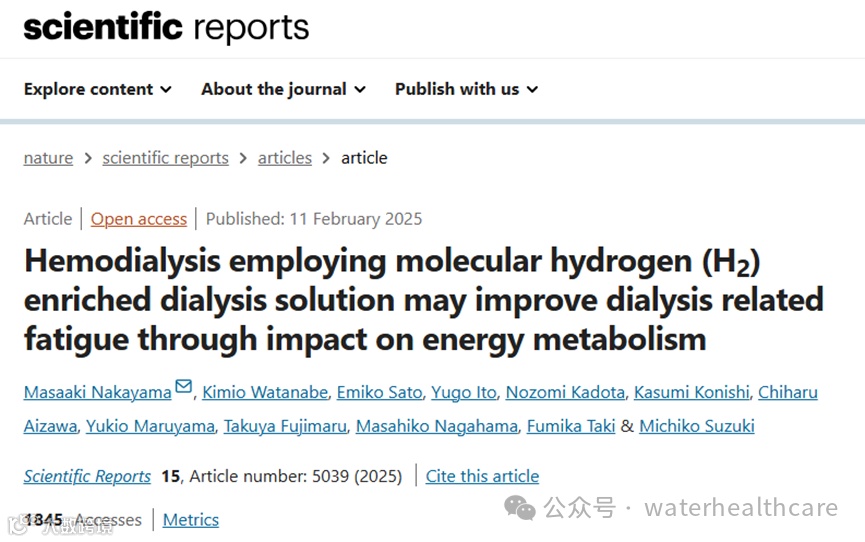 ▶论文链接 Hemodialysis employing molecular hydrogen (H2) enriched dialysis solution may improve dialysis related fatigue through impact on energy metabolism