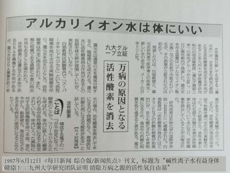 当然了,这个实验不过是其中一例而已。即便是用培养细胞所做的实验,也反复地尝试调整各种条件因素,做了相应的实验。结果也发现了电解氢水与鼓泡式水素水在抗氧化能力上的差异。此外他还表示,将来会不只停留在培养细胞实验这个层面上,还必须以小鼠等动物的实验为主,反复进行大量的多样化实验,花很长时间扎扎实实地去研究,否则依然很难得到医学界认可。