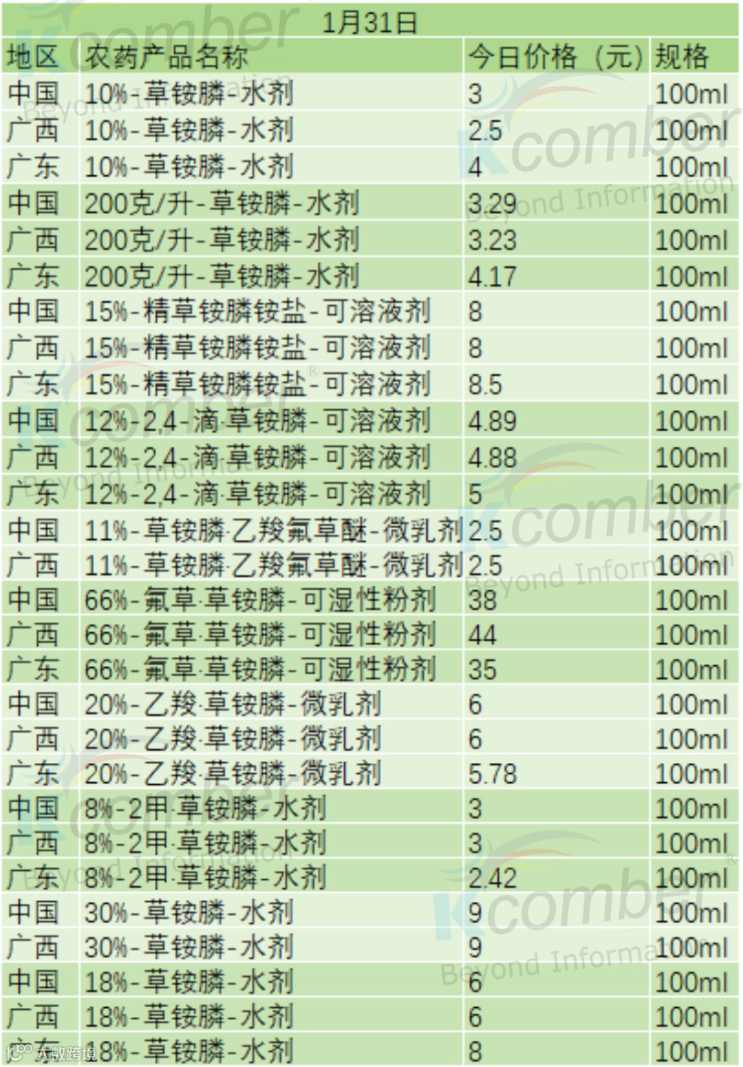 📊1 月 31 日草铵膦系列产品零售价(100ml 规格)