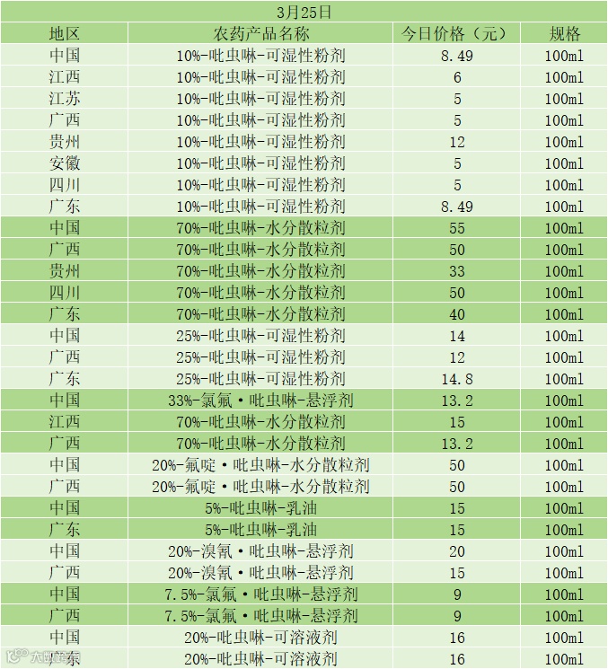 📅 3 月 25 日吡虫啉系列产品零售价(100ml)