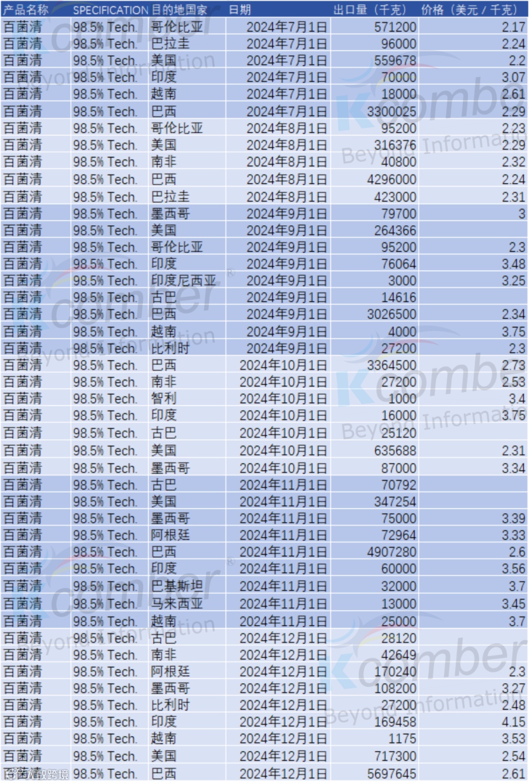 出口数据|2024年末阿维菌素出口透视:高纯度产品放量,价格两极分化