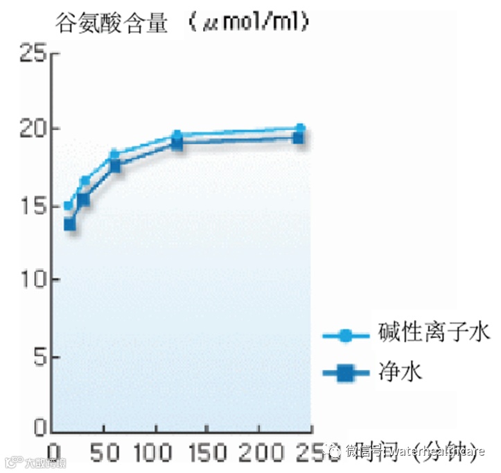使用碱性离子水浸泡海带初期,谷氨酸浓度高,碱性离子水相比净水来讲,谷氨酸浓度的溶出速度更快。