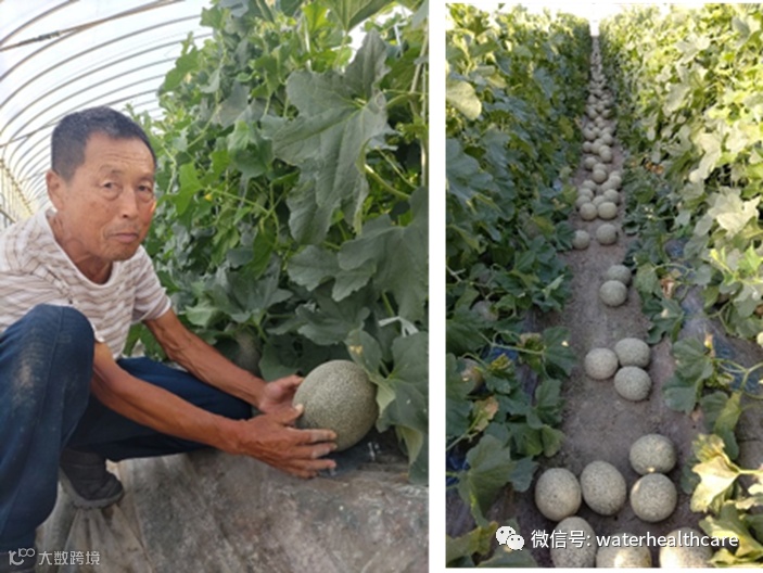 左:正常尺寸(4L) 右:电解氢水甜瓜平均尺寸(6L)