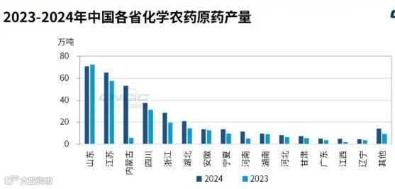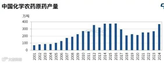 2024年,中国化学农药原药产量达367.5万吨,同比大增37.6%。其中: