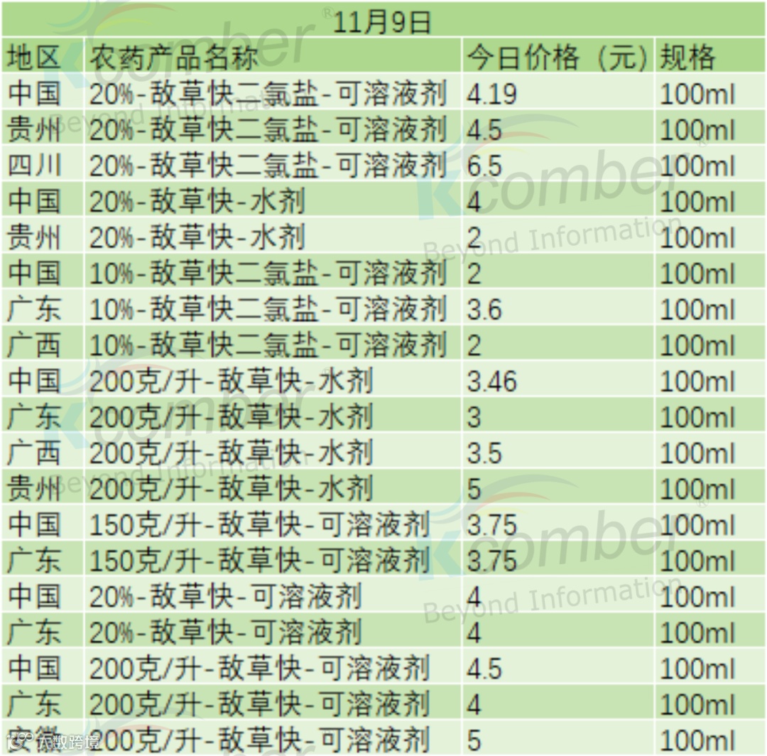 📅 11月9日 · 敌草快价格快报(100ml)