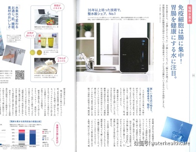 其中还介绍了具有改善肠胃作用的日本多宁的电解水素水整水器。