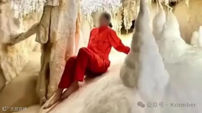 4月27日,贵州道真县一招商考察团队女子赤脚进入奥陶纪晶花池拍照,引发生态保护争议。