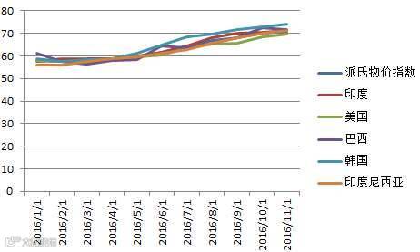 图2:2016年 1月~11月钛白粉5大出口国价格指数