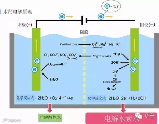 吉:电解时水中付加电流,H就会从H2O中分离出来,相应地OH-就变多了,于是碱性值就升高了,同时由于H离开H2O,所以水里面的氢气就变成气泡出现・・・。