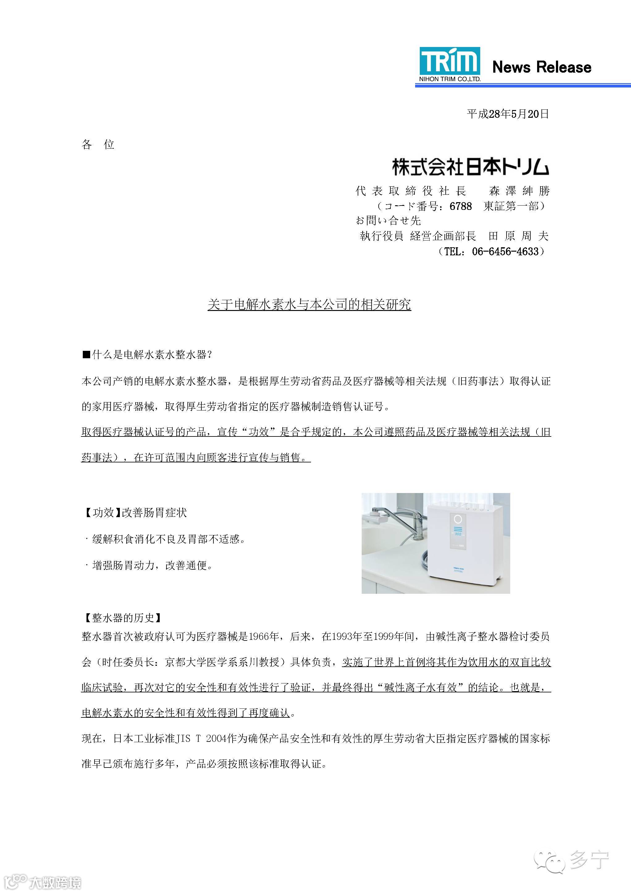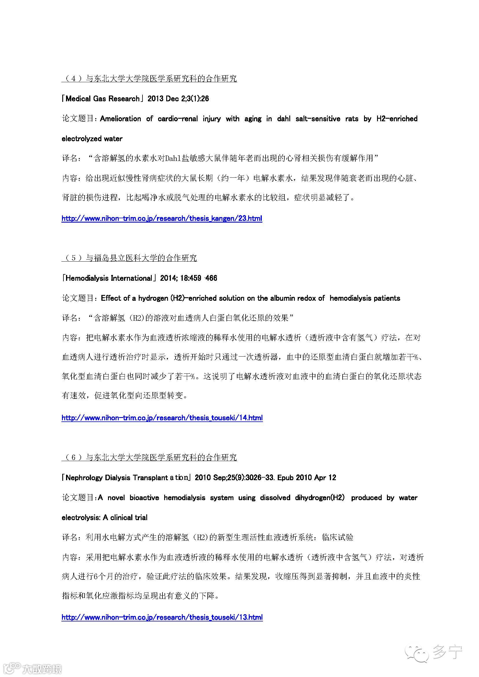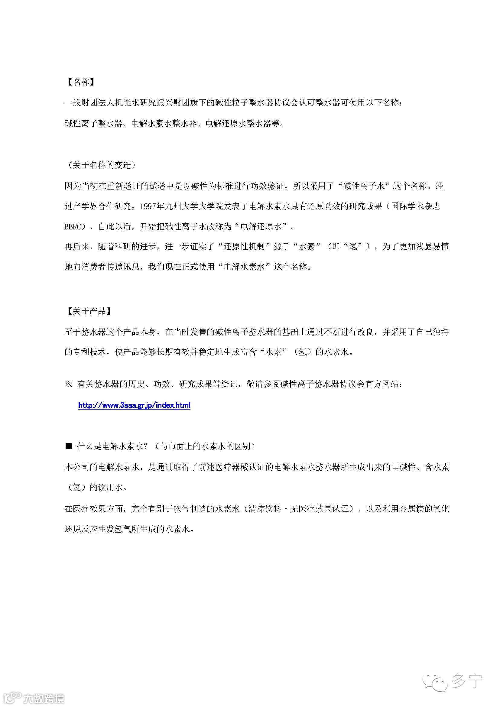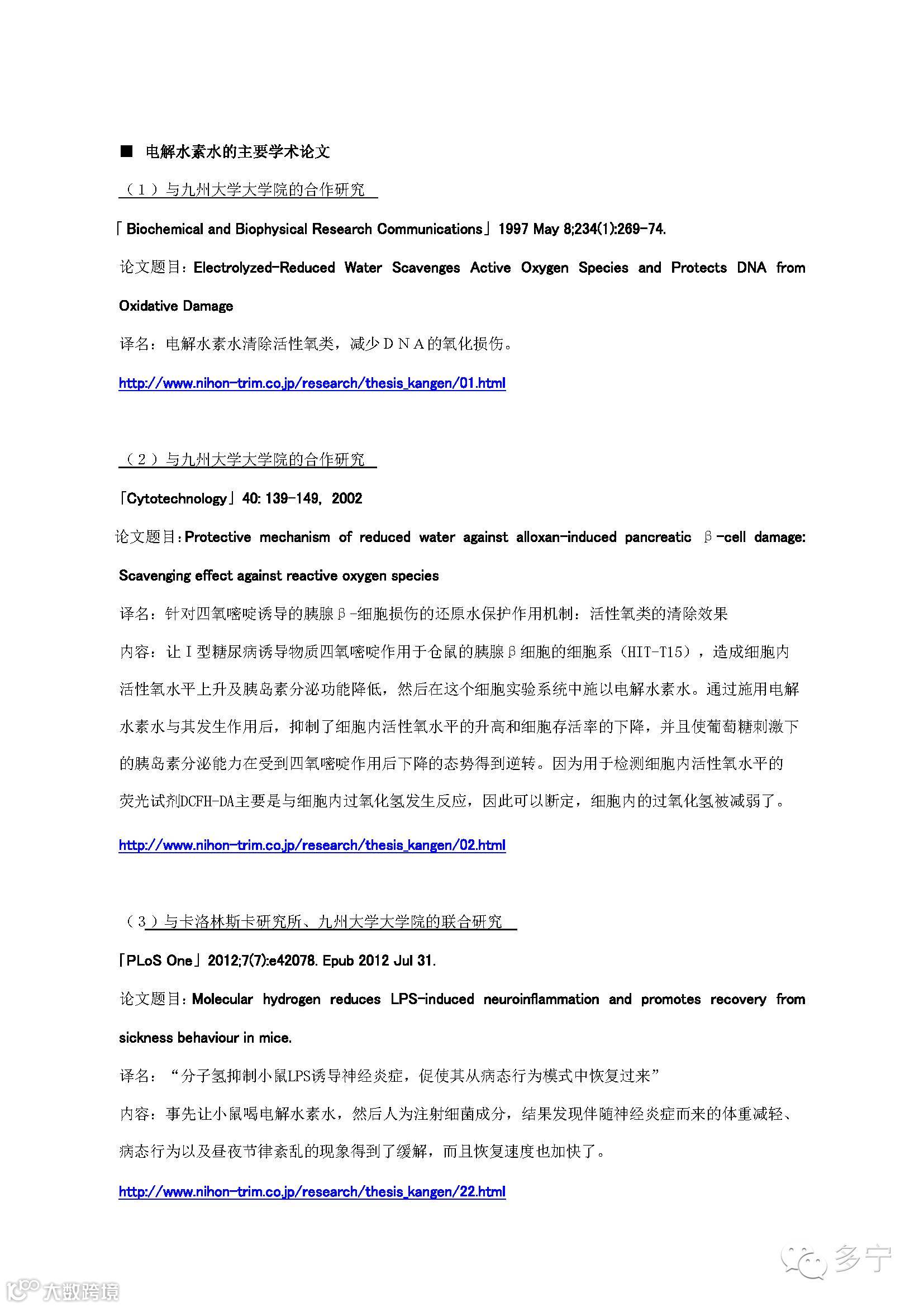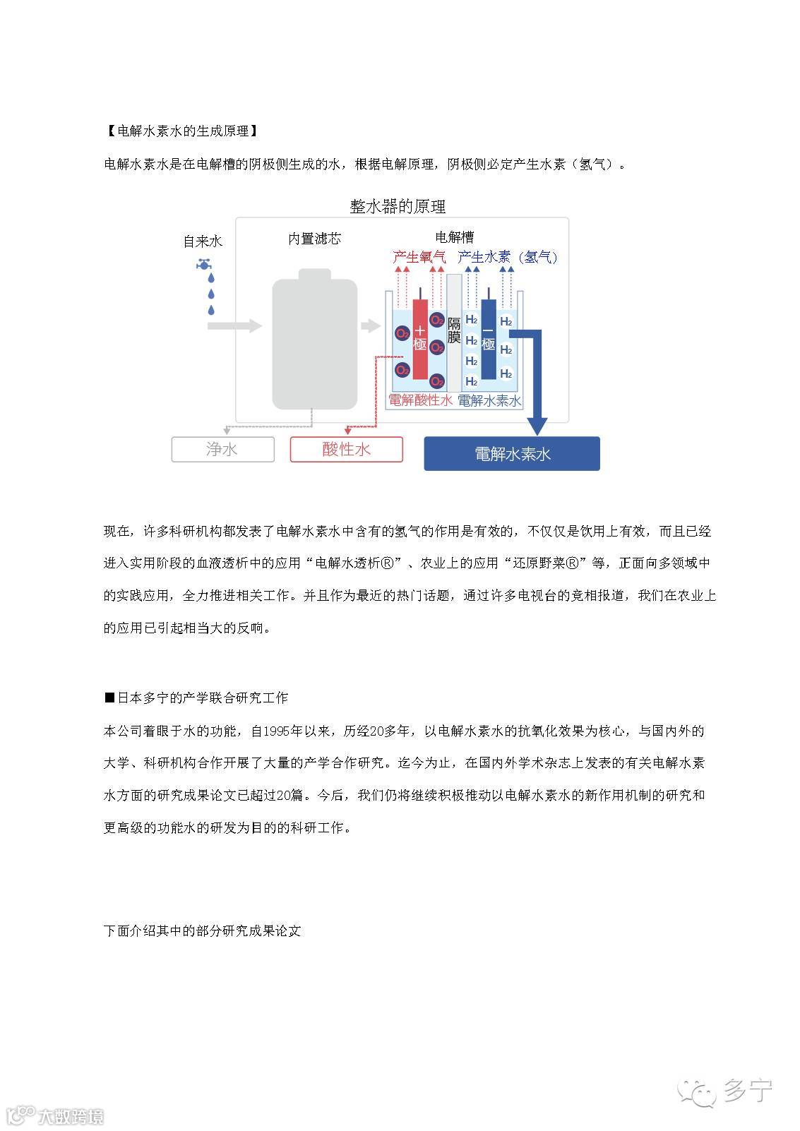 水素水及其历史、日本多宁在此方面的相关研究向投资者
