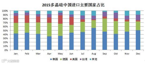 美国因受到“双反”税率及“暂停加工贸易措施”的严格执行影响,多晶硅出口中国受阻,进口量较未受影响之前大幅缩减。截止15年底,台湾进口多晶硅量已经连续六个月超越美国成为中国第三大进口地区。众所周知台湾没有多晶硅生产企业,推断从台湾进口的多晶硅绝大部分是从美国进入台湾,经加工成铸锭后再转口至中国,同时也有伪造原产地证的可能。转口台湾反规避现象日益显著,严重削弱了“双反”及“58号文件”的有效力,对国内多晶硅企业继续造成冲击,因此,目前需要考虑封堵台湾转口漏洞的几率。
