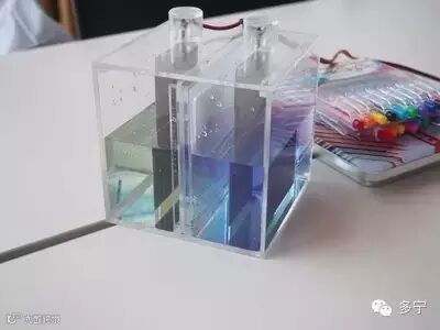 首先我们使用简易装置来代表整水器(电解水机)内部的核心装置电解槽,然后让小朋友们观看水的电解反应是怎么一回事。