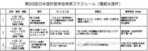 本届学术集会上,关于电解水透析,《透析医疗中电解功能水的有效性与前景》是6大演讲主题之一,此外还分别以一般性演讲和海报形式进行了发布。