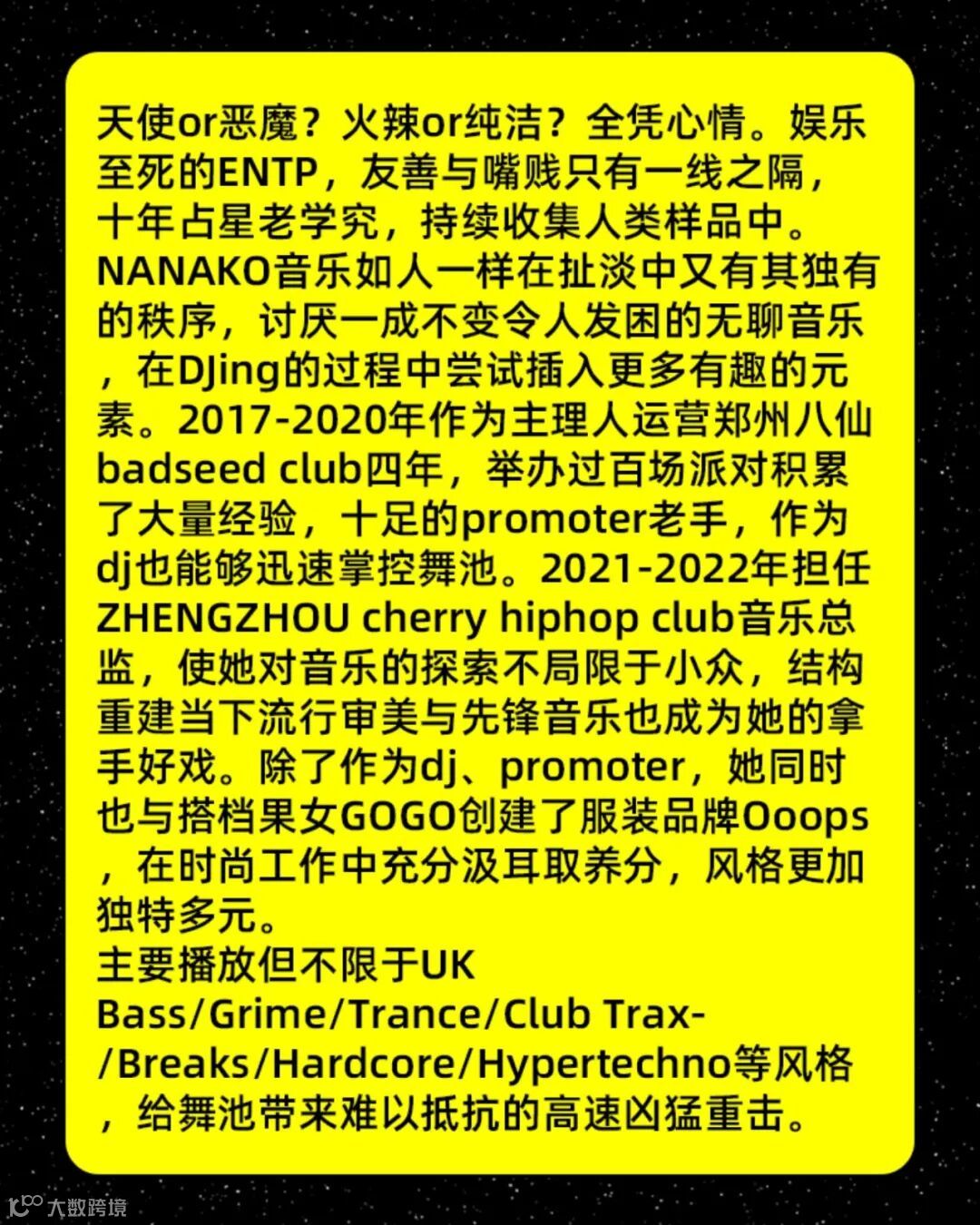 并在短暂的三年间取得了 “Elevator 冷笑话大赛年度之星” “南丹东路交通安全推广标兵” “连续6小时没有人在舞池被踩掉鞋子记录” 等诸多荣誉,为生机勃勃的俱乐部场景增添诡谲的幽默氛围。