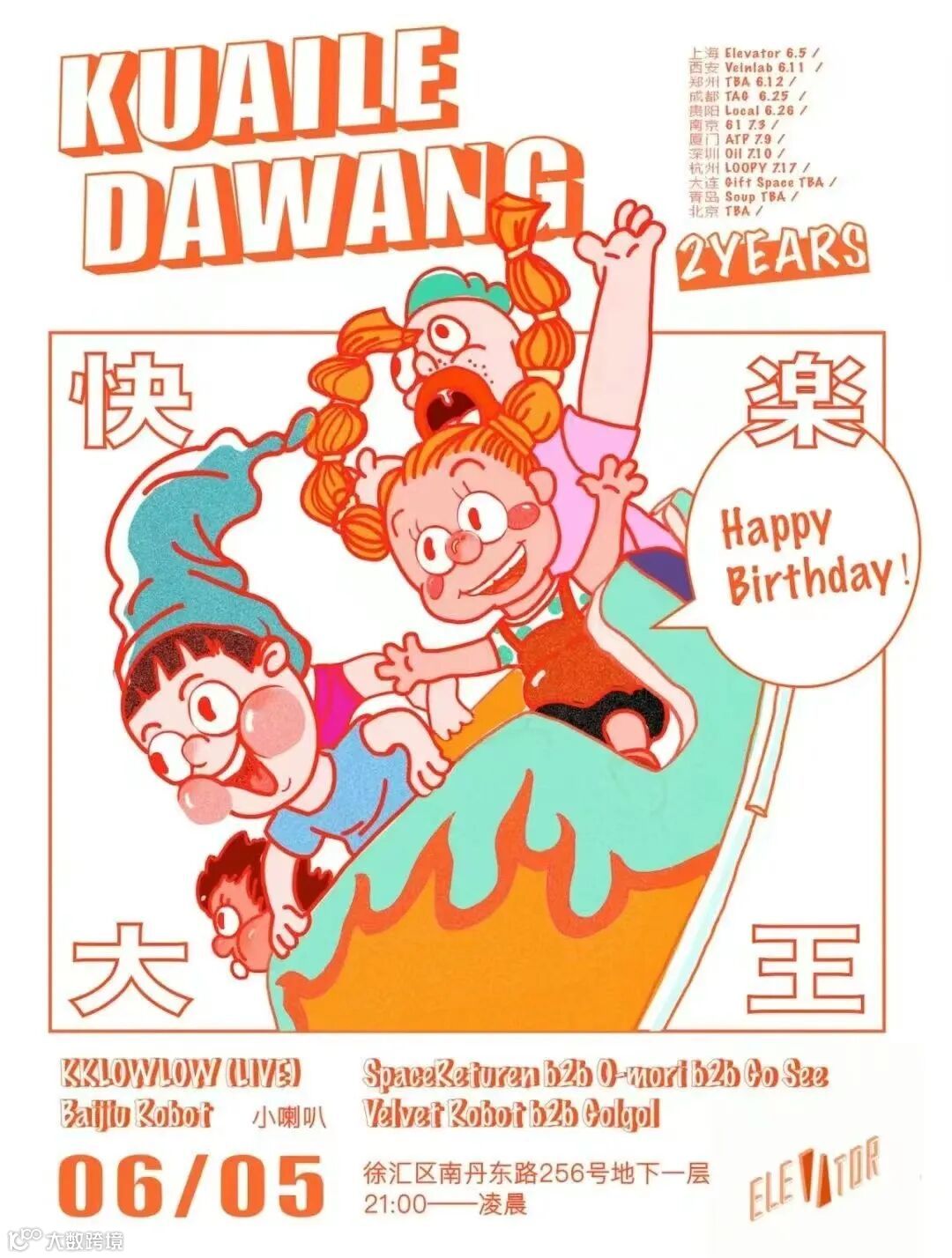 快乐大王诞生在位于上海市徐汇区的传奇俱乐部 Elevator,从19年到23年,我们接待了数以万计的快乐客人。