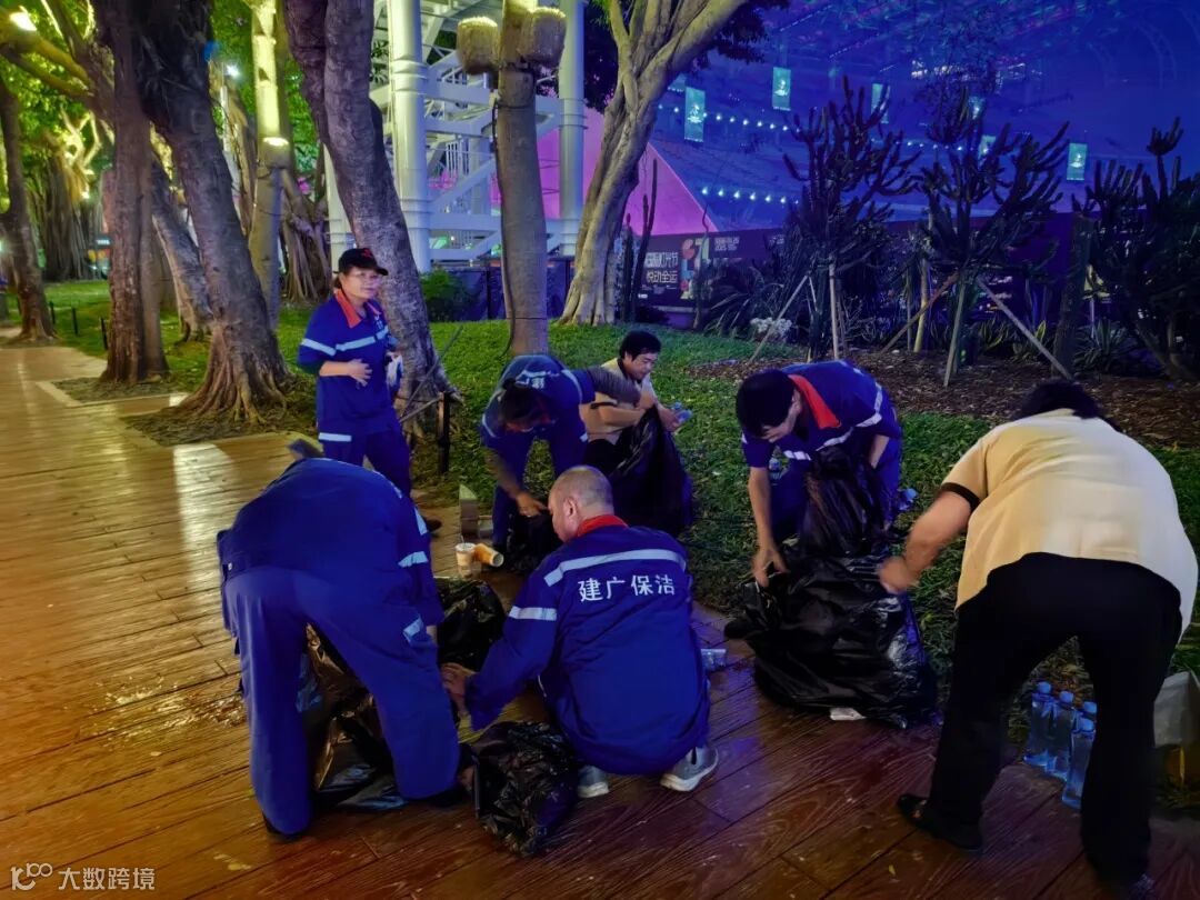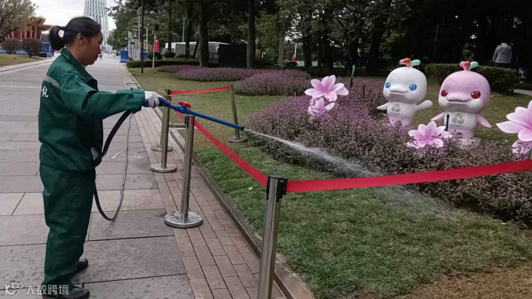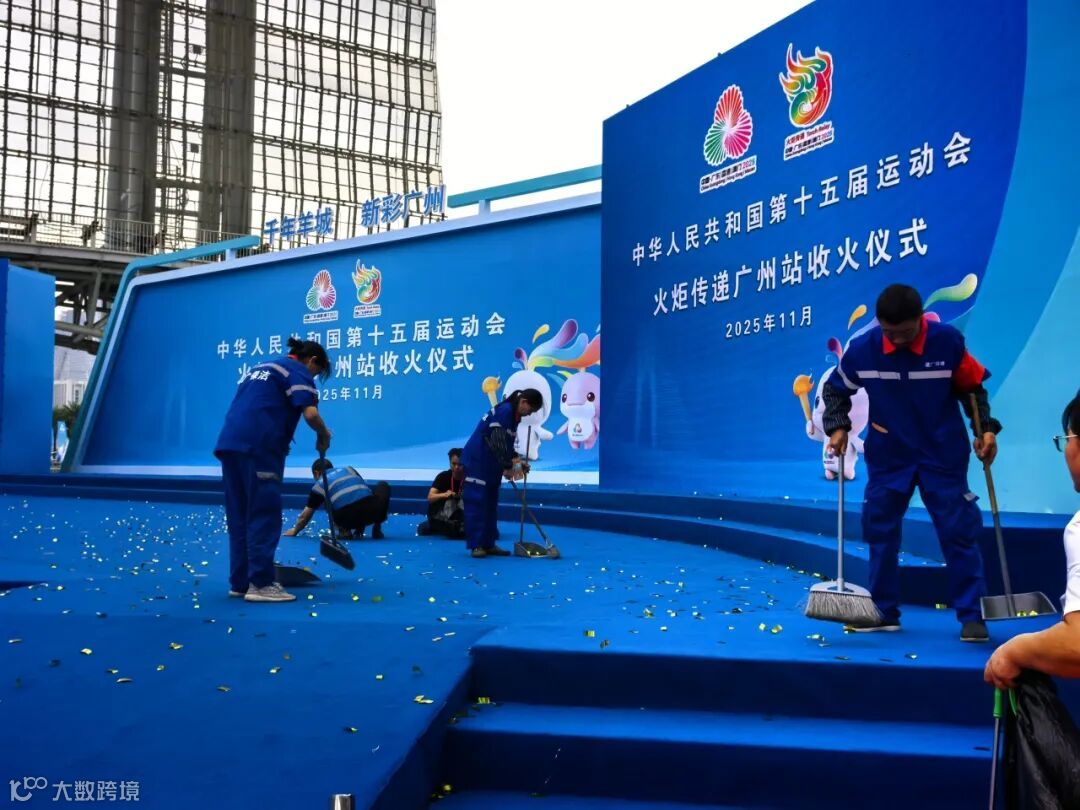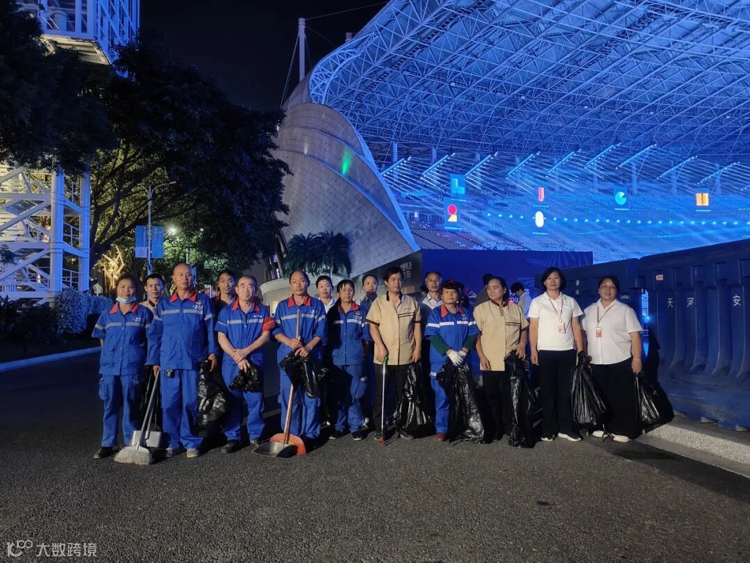 赛事期间,团队同步加强环境保障,在花城广场、海心沙等重点区域,每日投入管理人员203名、保洁740名、施工及绿化人员330名,配备洒水车、高压清洗车等设备,日均清理垃圾约25吨,通过环境维护与隐患排查,为赛事的安全运行筑牢根基。
