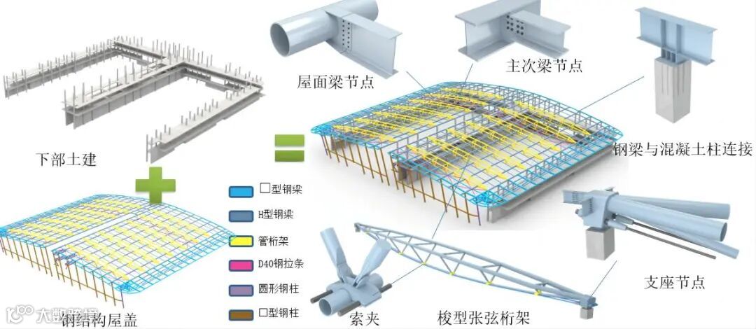 尤其是重难点之一的钢结构安装,项目部采用地面组装、整体吊装的施工方法,并结合3D扫描虚拟预拼装技术、1:7缩尺模型试验模拟等手段,加强技术攻关,依次解决了空间姿态定位、预应力张拉、大跨度吊装等困难挑战,有力提升了施工效率和履约进度。