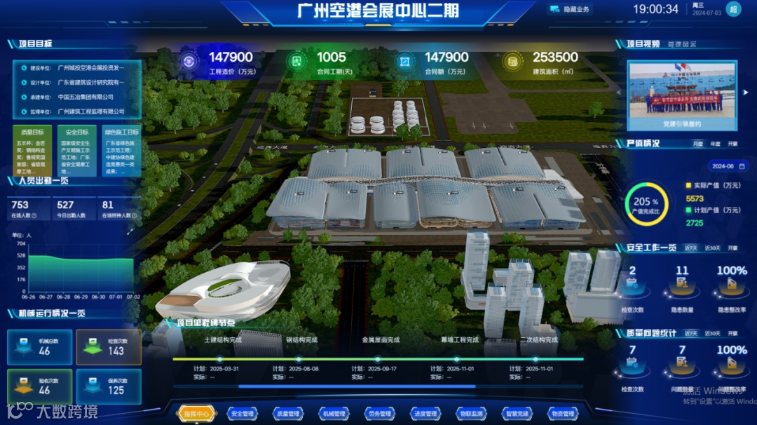 地处广东省广州市空港经济区核心位置的中央商务区会展中心项目(广州空港博览中心),紧邻客流量全国第一、规模华南最大的白云机场和粤港澳大湾区大型铁路枢纽广州北站,拥有全球“顶流”的交通枢纽优势。作为大湾区会展功能区综合建筑群,项目造型简洁而宏大,自东向西有机抬升,可谓“云山珠水、空港腾飞”,建成后将成为广州北部发展重要增长极,带动区域内相关产业的蓬勃发展,对助力广州打造“国际会展之都”、建设国际消费中心城市具有重大意义。