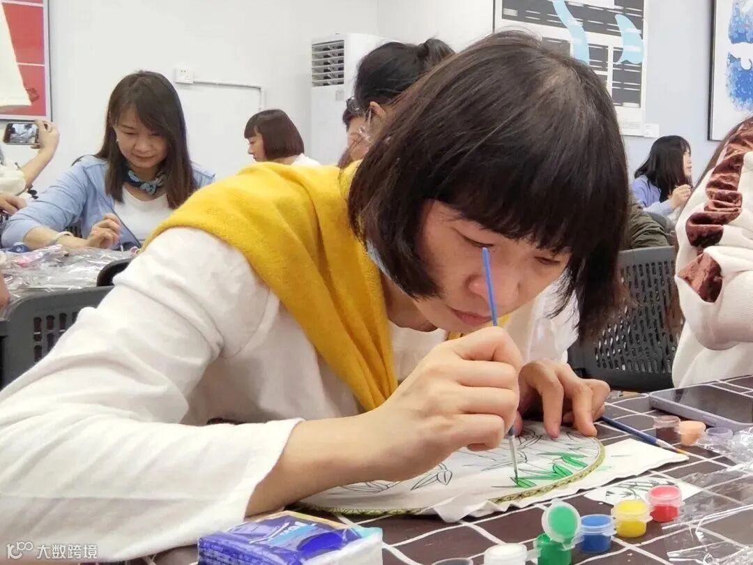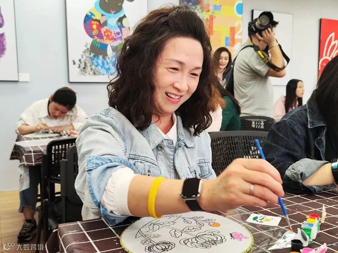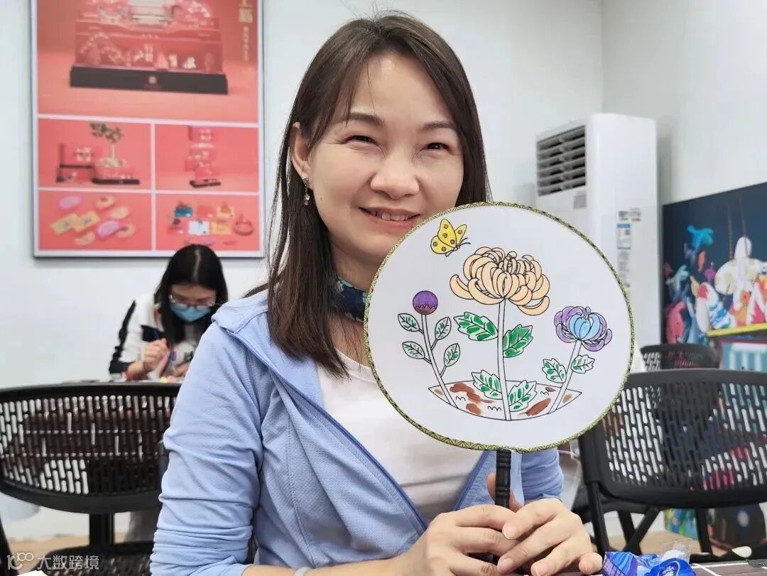 一把把或是清新雅致、或是热情浓郁、或是个性有趣的团扇诞生,大家纷纷拿着自己的专属团扇合影留念,成就满满。