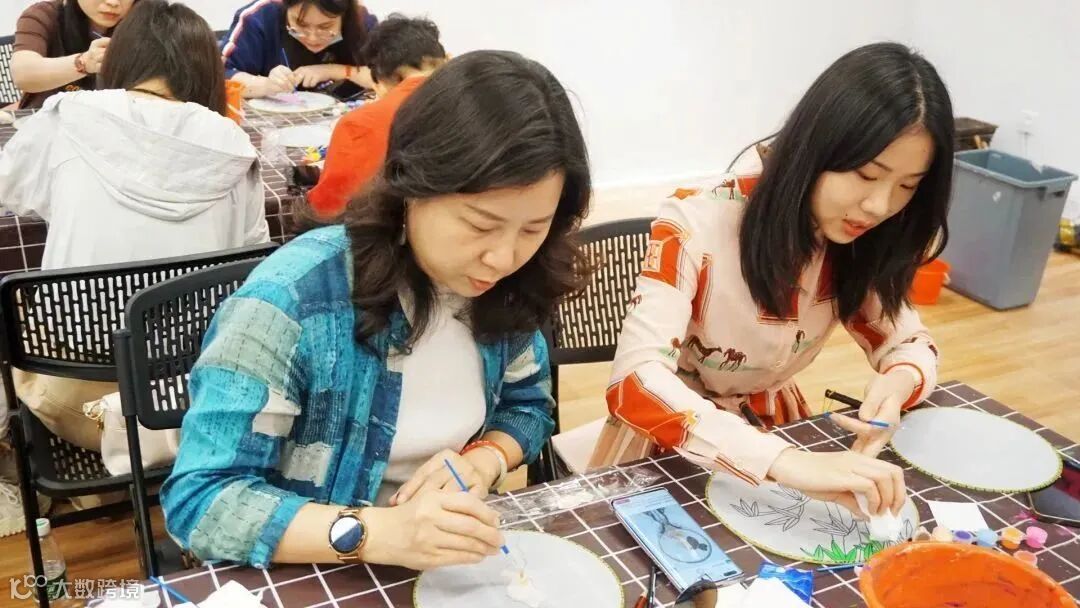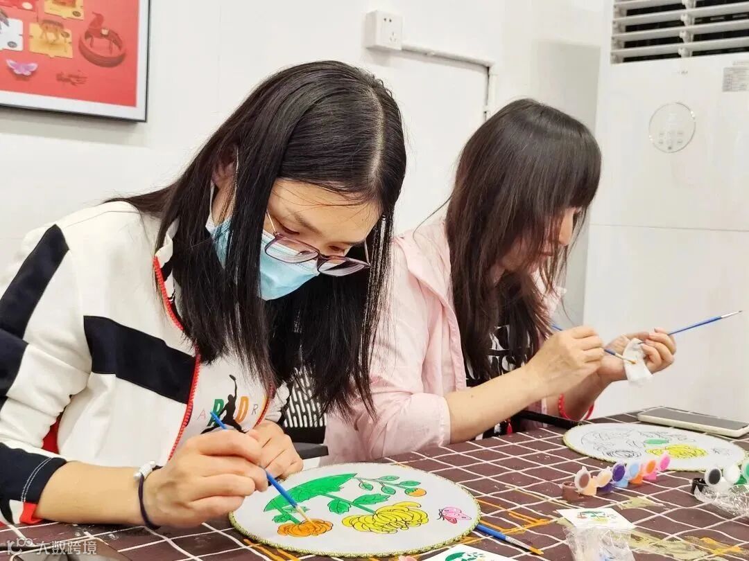 中国扇文化有着深厚的文化底蕴,团扇代表着“团圆、友善、吉祥如意”的美好寓意。女职工们在听完美术馆老师关于中国传统工艺品团扇的历史背景后,迫不及待发挥自己的创意和灵感,聚精会神地动手绘制专属团扇。