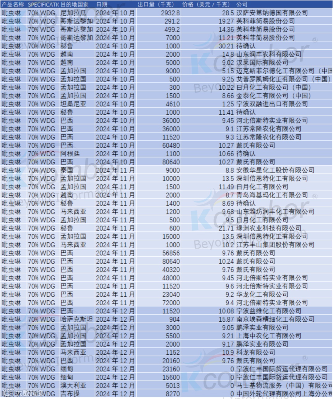 12 月巴西订单体量仍然维持在 20,160 kg 等中等水平,显示长期稳定需求。