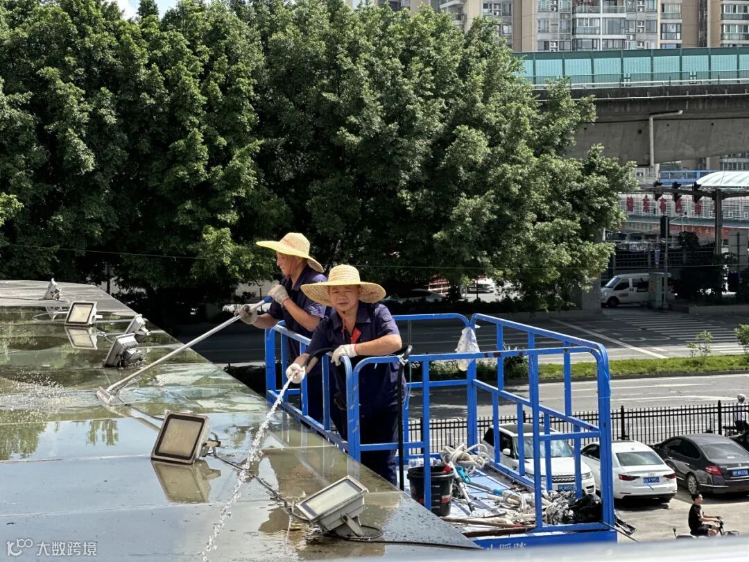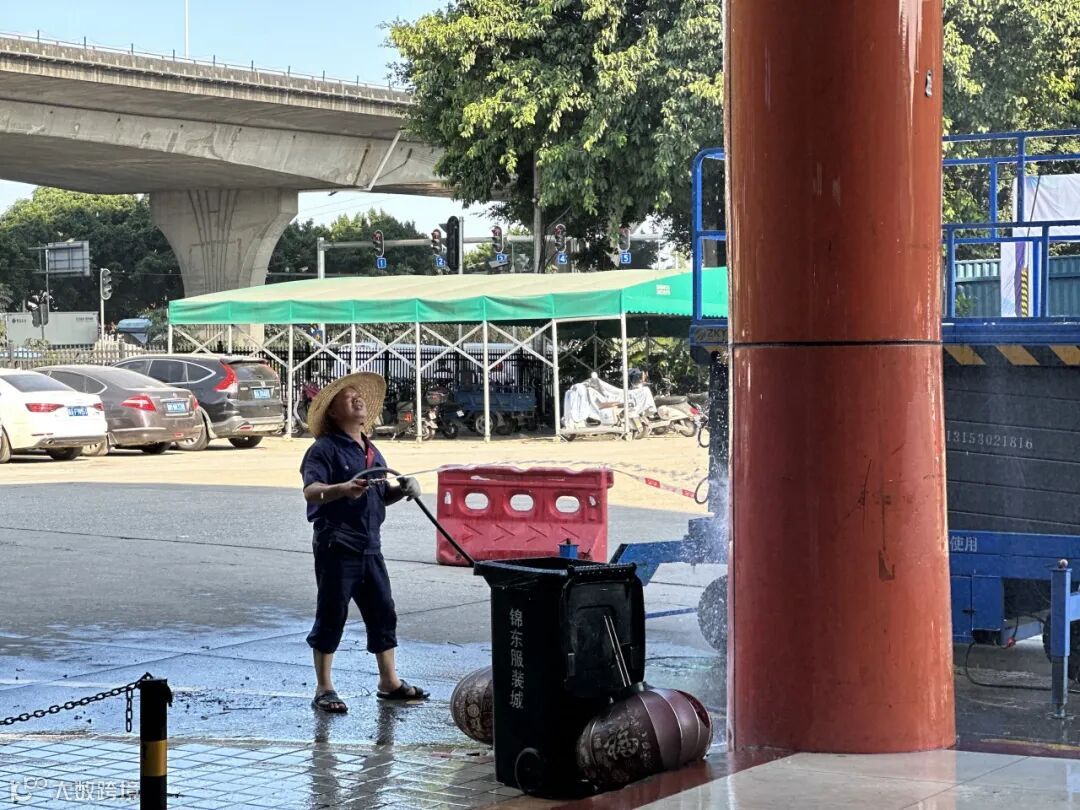 本次清洗工作的开展,由锦东管理处各部门联合协调完成,烈日当空,工程部师傅仍坚持细心清理楼板。