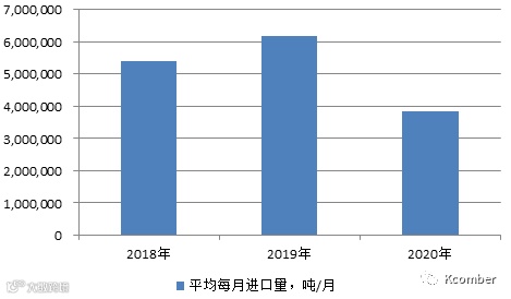 图5. 2018年-2020年3月中国三文鱼平均每月进口量