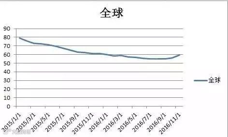 图1:2015年~2016年11月中国草甘膦出口全球平均价格指数