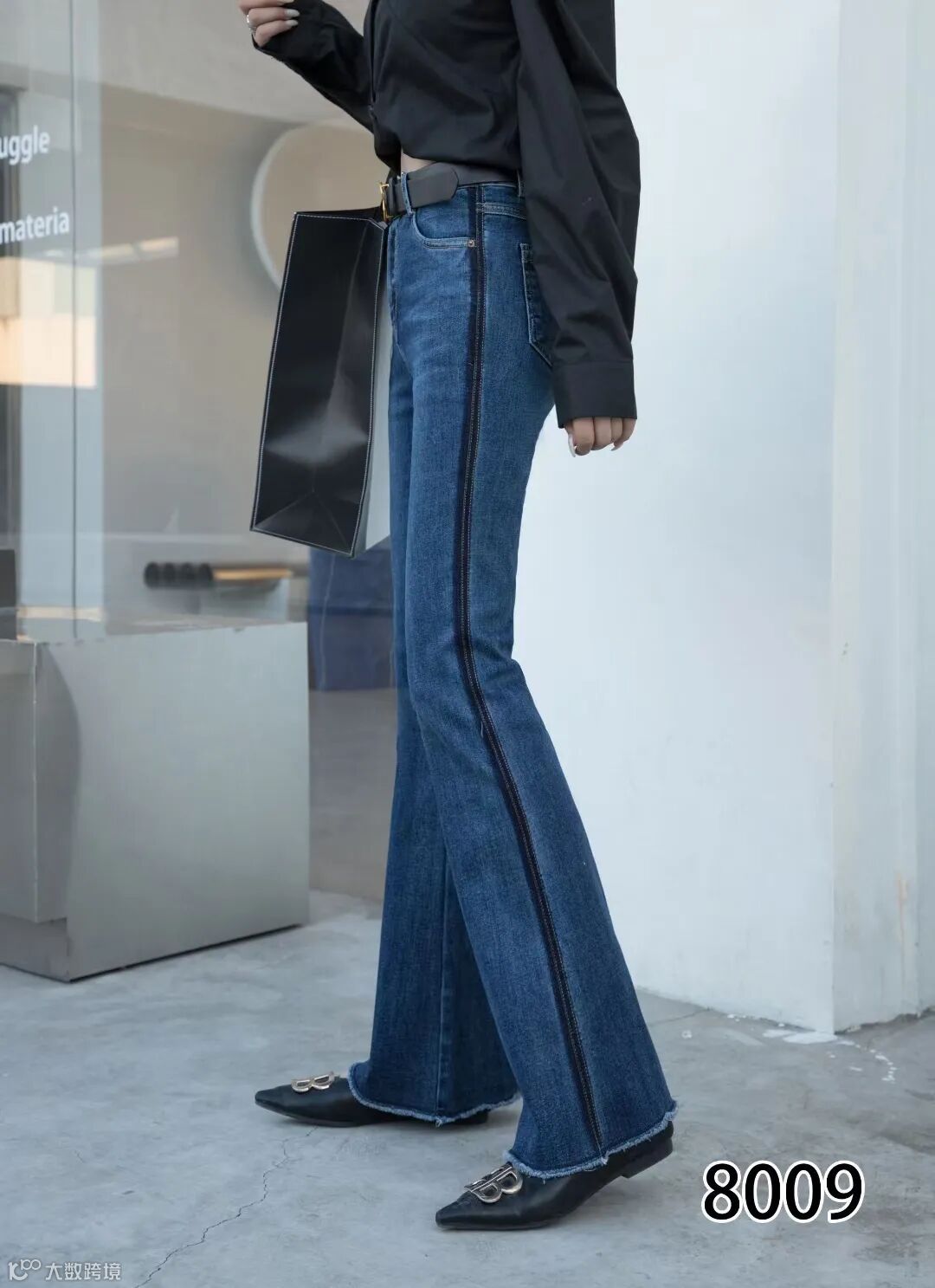 深蓝色中腰微喇叭裤