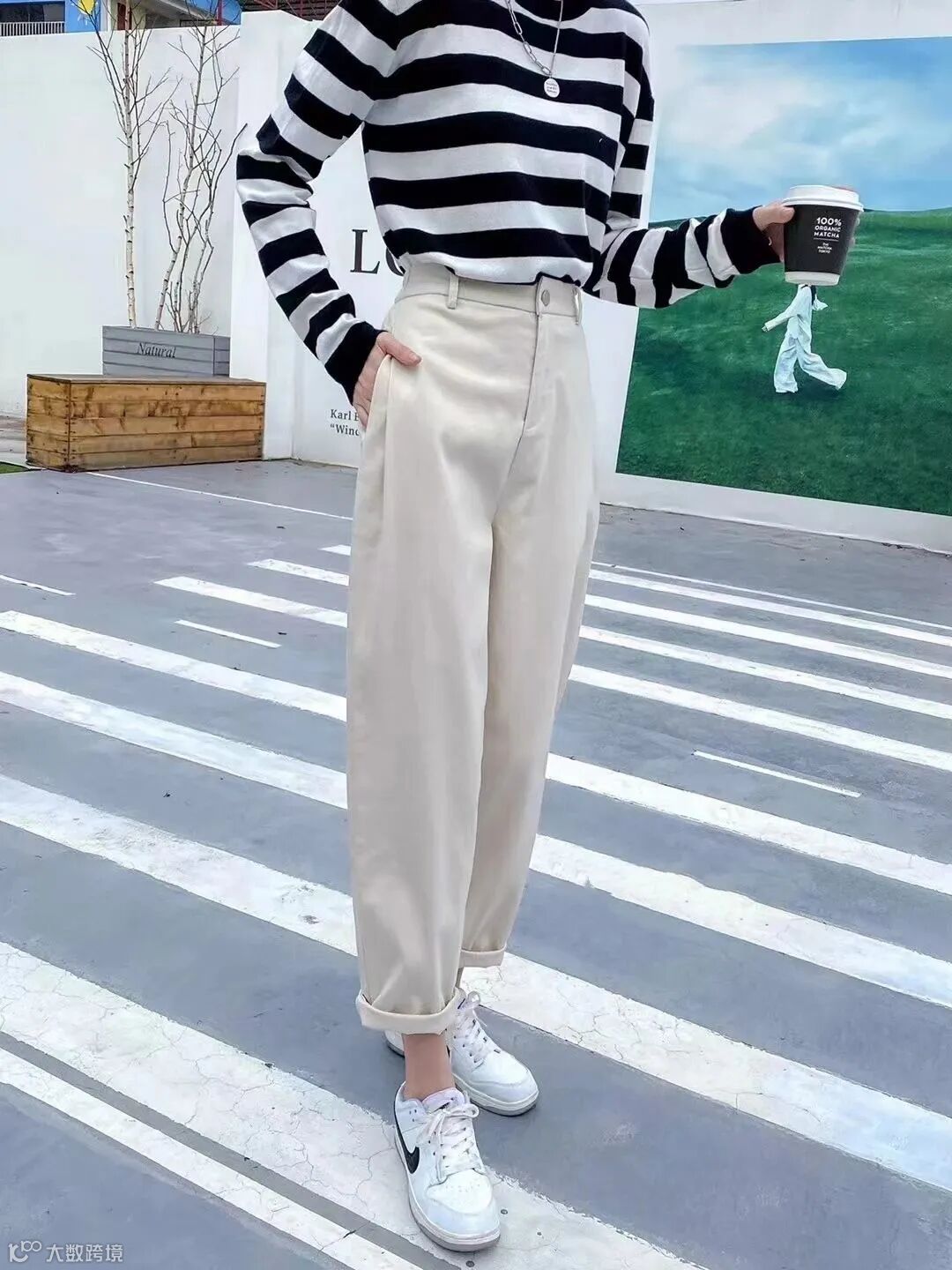 宽松的直筒裤型,完美修饰腿部线条